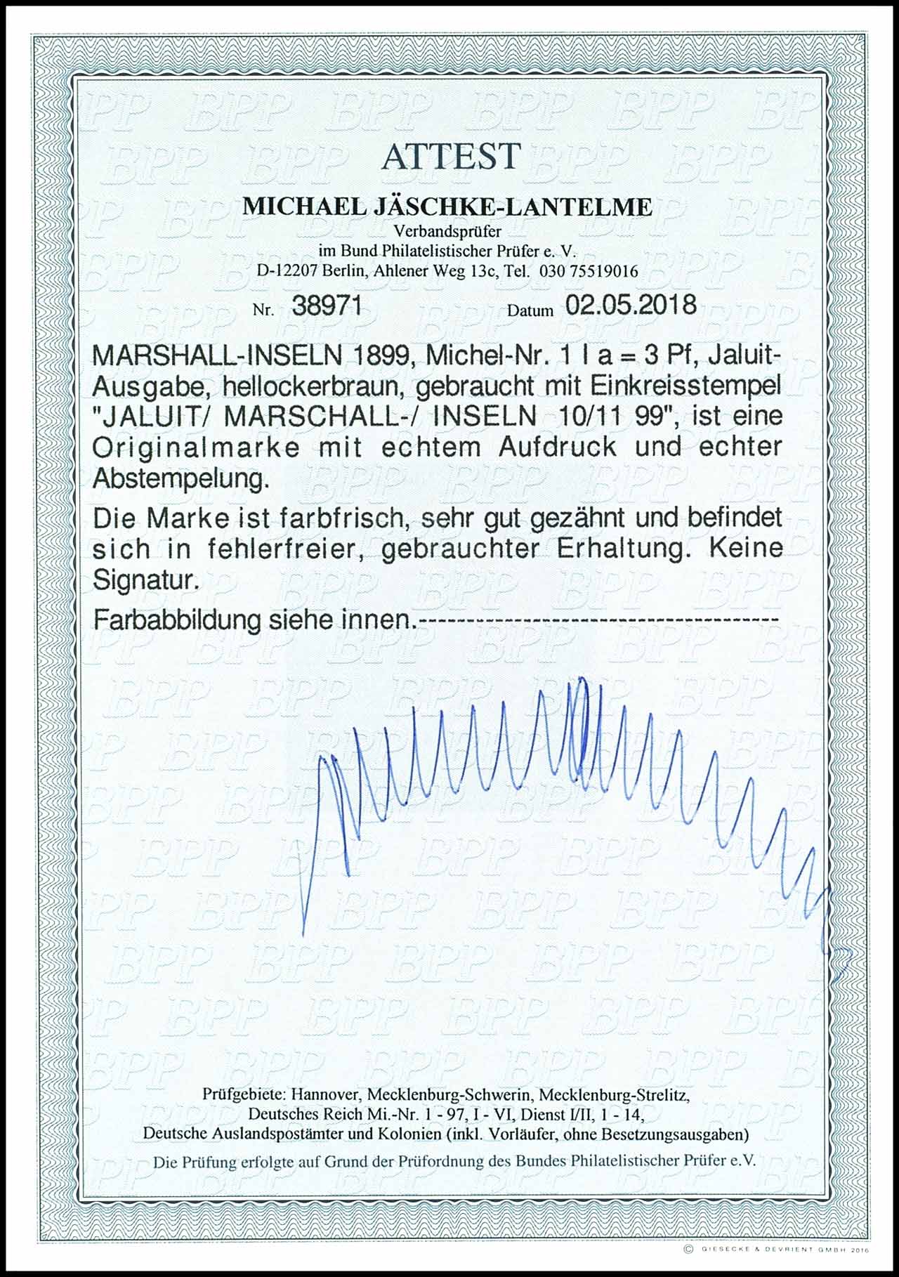 3 Pfennig hellockerbraun mit Aufdruck, gestempelt, tadellose Erhaltung, Fotoattest Jäschke-L. BPP "in fehlerfreier gebrauchter Erhaltung", Mi. 2.600.-