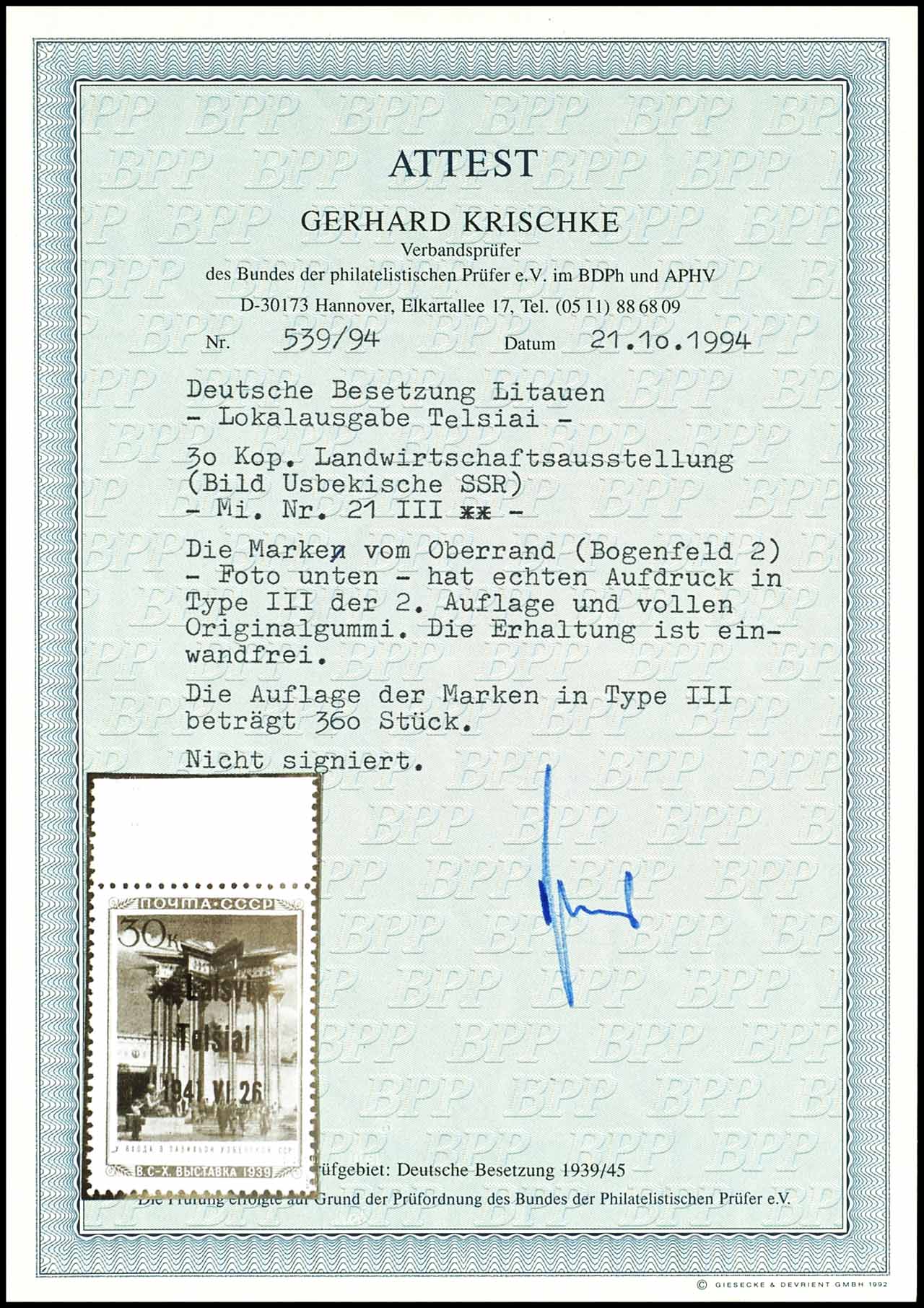 30 Kop "Pavillon Usbekische SSR" tadellos postfrisch und noch unsigniert, Fotoattest Krischke BPP "Die Erhaltung ist einwandfrei." Mi. 450.-