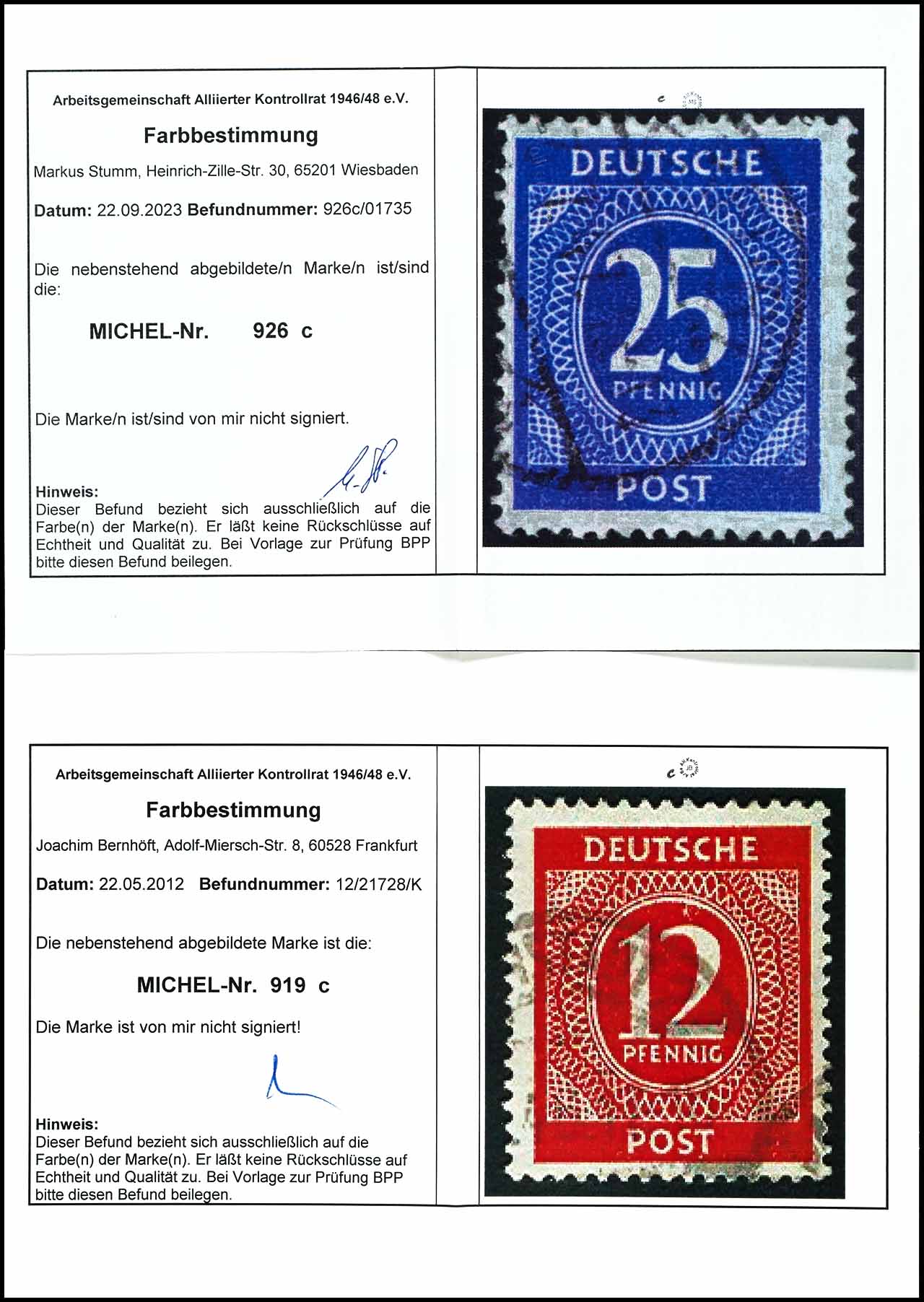 12 Pf. Ziffer dunkelrosa und 25 Pf. lebhaftultramarin, je tadellos, gestempelt, je Fotobefund ARGE, Mi. 340.-