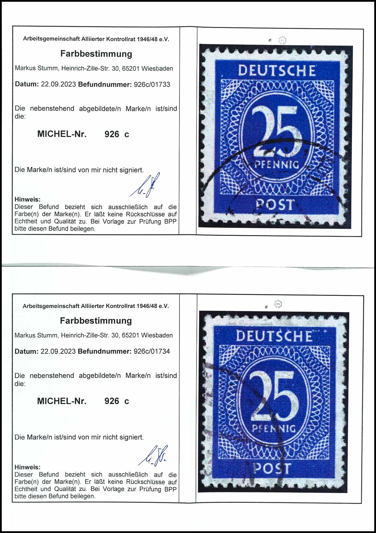 25 Pf. lebhaftultramarin, 2 Werte, je tadellos, gestempelt, Fotobefund ARGE , Mi. 320.-