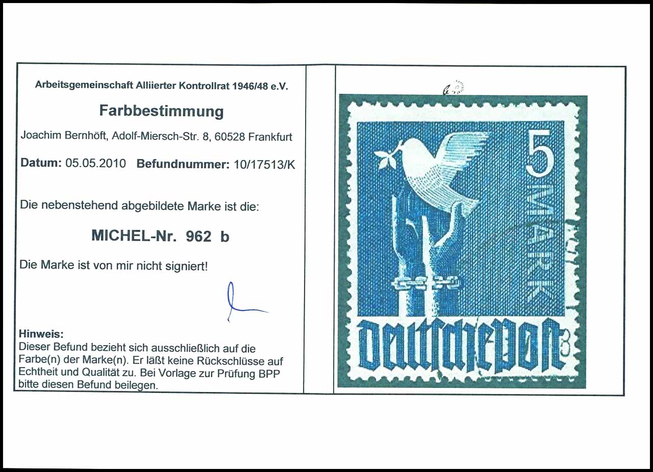 5 M. Taube violettultramarin, gestempelt, Fotobefund ARGE, Mi. 180.-
