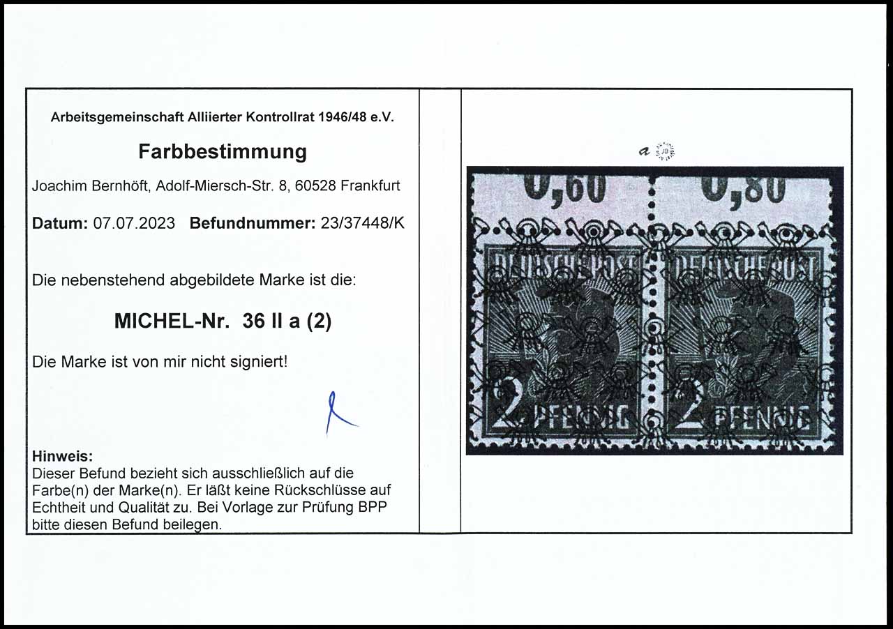 2 Pf. Arbeiter schwarzbraun, waagerechtes Oberrandpaar (im Oberrand beschnitten), durchgezähnt, postfrisch, Fotobefund ARGE, Mi. 500.-