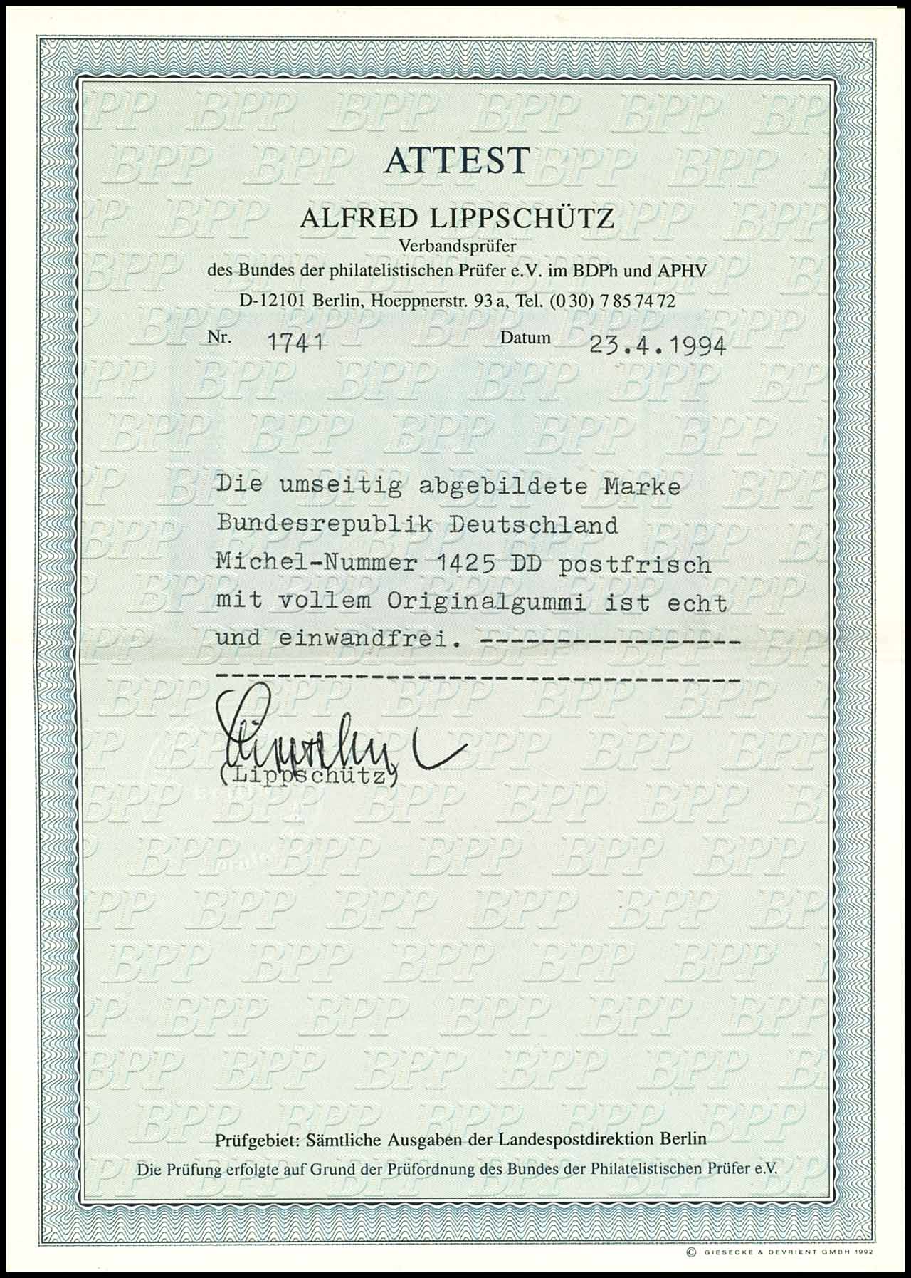 80 Pfennig Silcher, klarer Doppeldruck der rotbraunen Farbe (Wertziffer und Rahmen), 2 mm verschoben, postfrisch, tadellose Erhaltung, Fotoattest Alfred Lippschütz BPP "echt und einwandfrei"