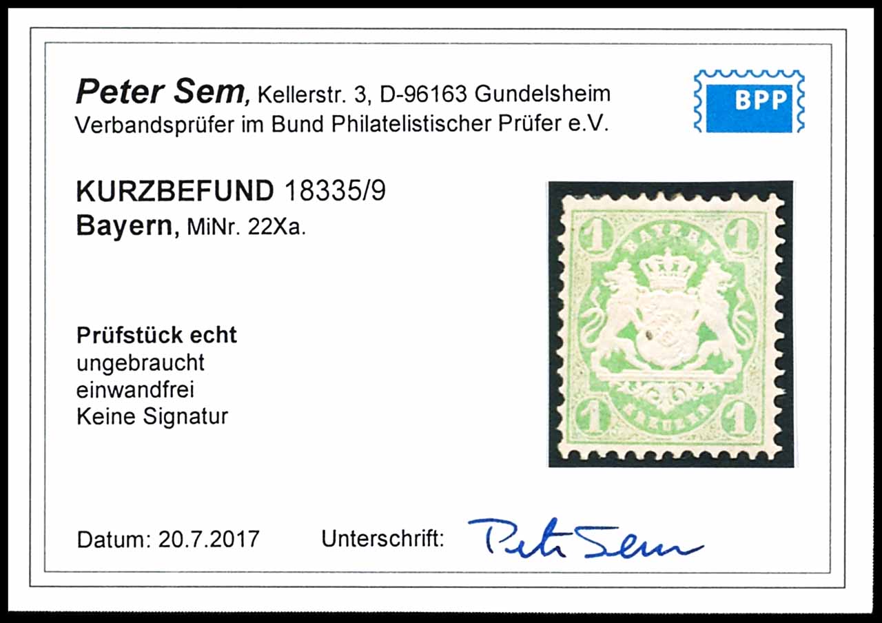 1 Kreuzer hellgrün, Wasserzeichen X, farbfrisches Kabinettstück, ungebraucht mit Originalgummierung, tadellose Erhaltung, Fotobefund Peter Sem BPP "einwandfrei"