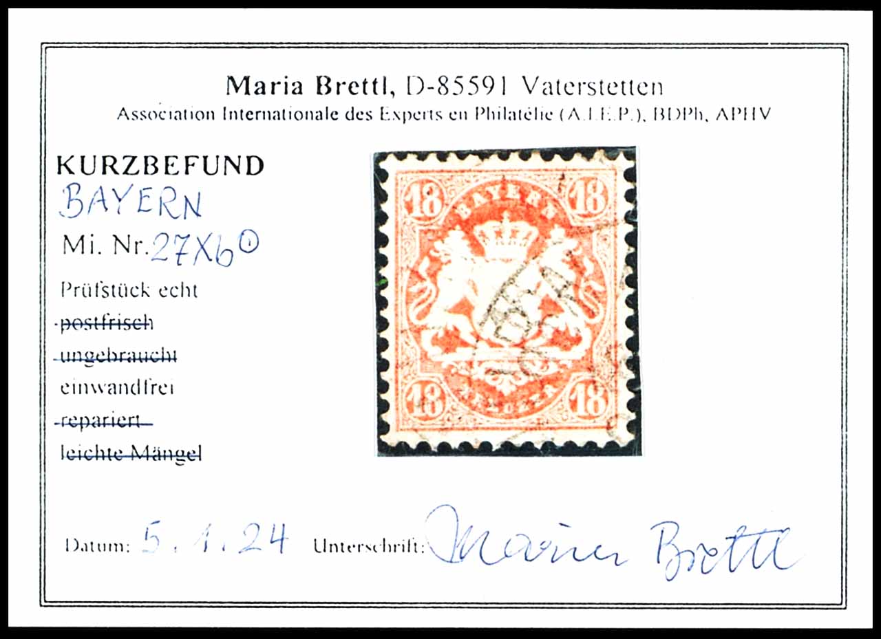 18 Kreuzer mit Wasserzeichen "enge Rauten" dunkelziegelrot in vollzähniger, mehrfach gestempelter Prachterhaltung, Foto-Kurzbefund Brettl "einwandfrei"