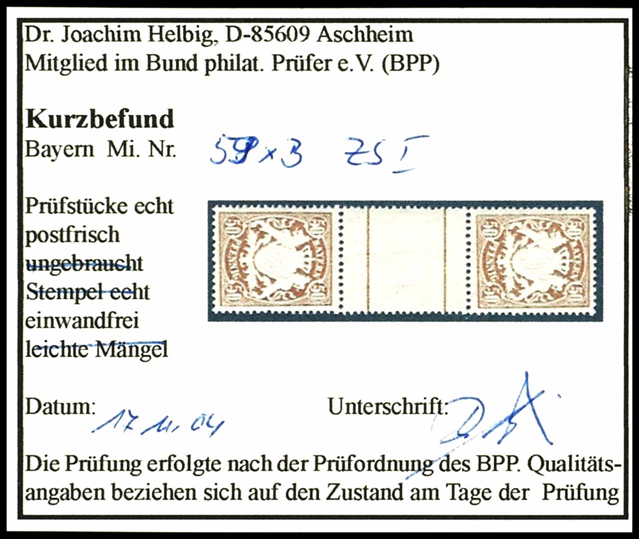 50 Pfennig Wappenausgabe, große Zähnungslöcher, senkrechtes Zwischenstegpaar, postfrisch, tadellose Erhaltung, unsigniert, Fotobefund Dr. Helbig BPP "einwandfrei", Mi. 900.-