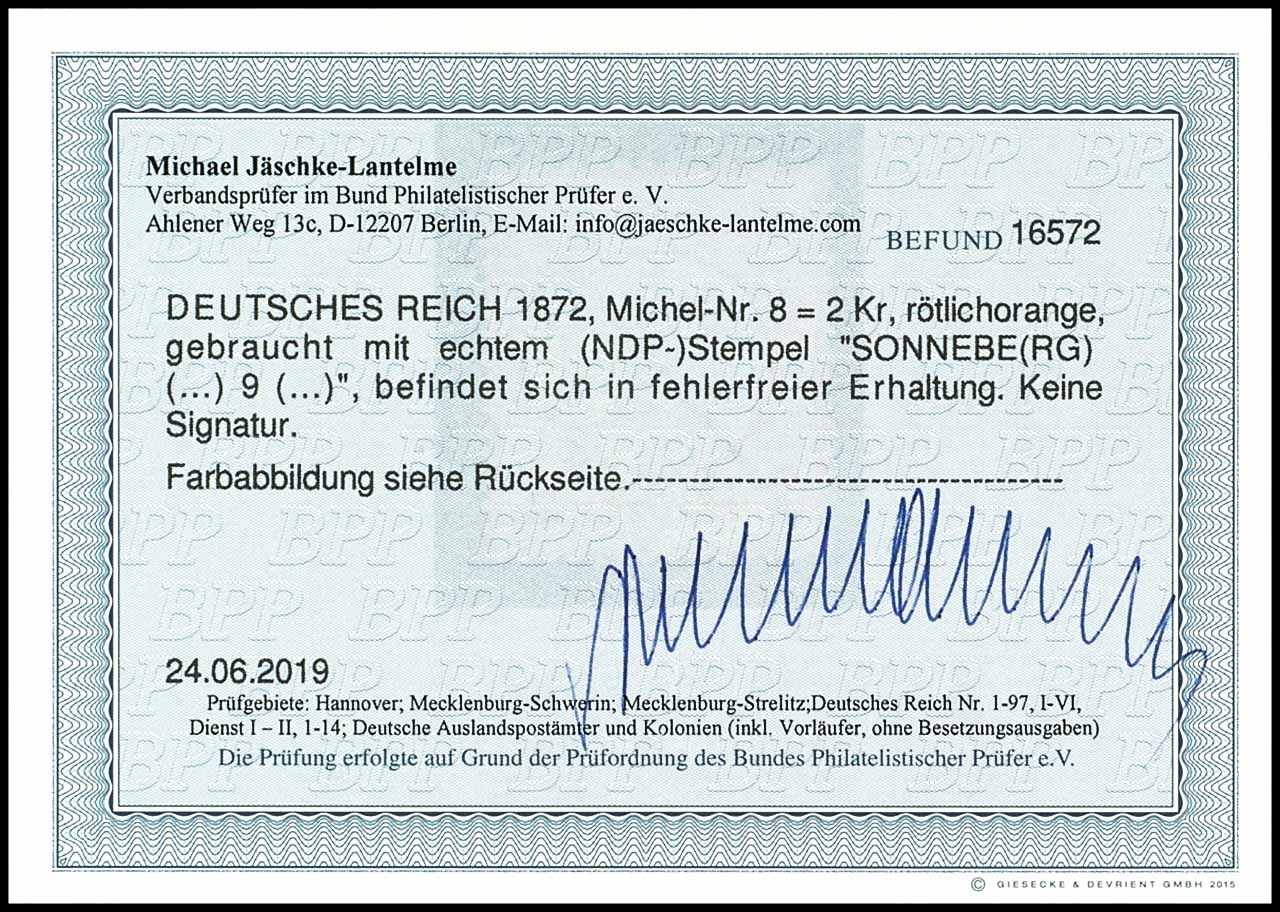 2 Kreuzer kleiner Schild rötlichorange, entwertet mit NDP-Ra3 "SONNEBERG", tadellose Erhaltung, unsigniert, Fotobefund Michael Jäschke-Lantelme BPP "in fehlerfreier Erhaltung.", Mi. 400.-