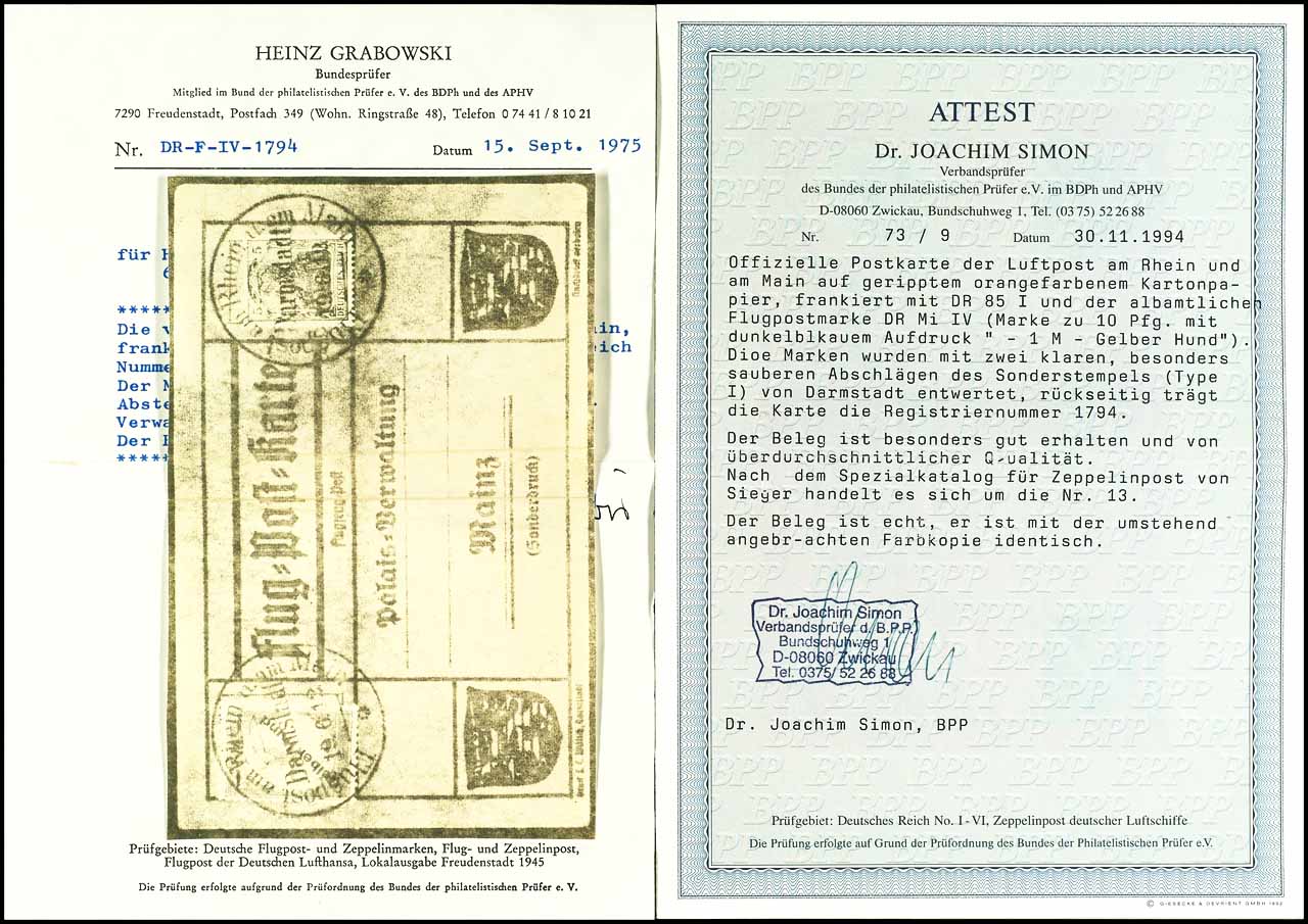 1 Mark Gelber Hund zusammen mit 5 Pfennig Germania auf ungelaufener Flugpostkarte mit Entwertung "Darmstadt 19.6.12", tadellose Erhaltung, geprüft Grabowski BPP, Fotoattest Dr. Joachim Simon BPP (1994), Mi. 280.-