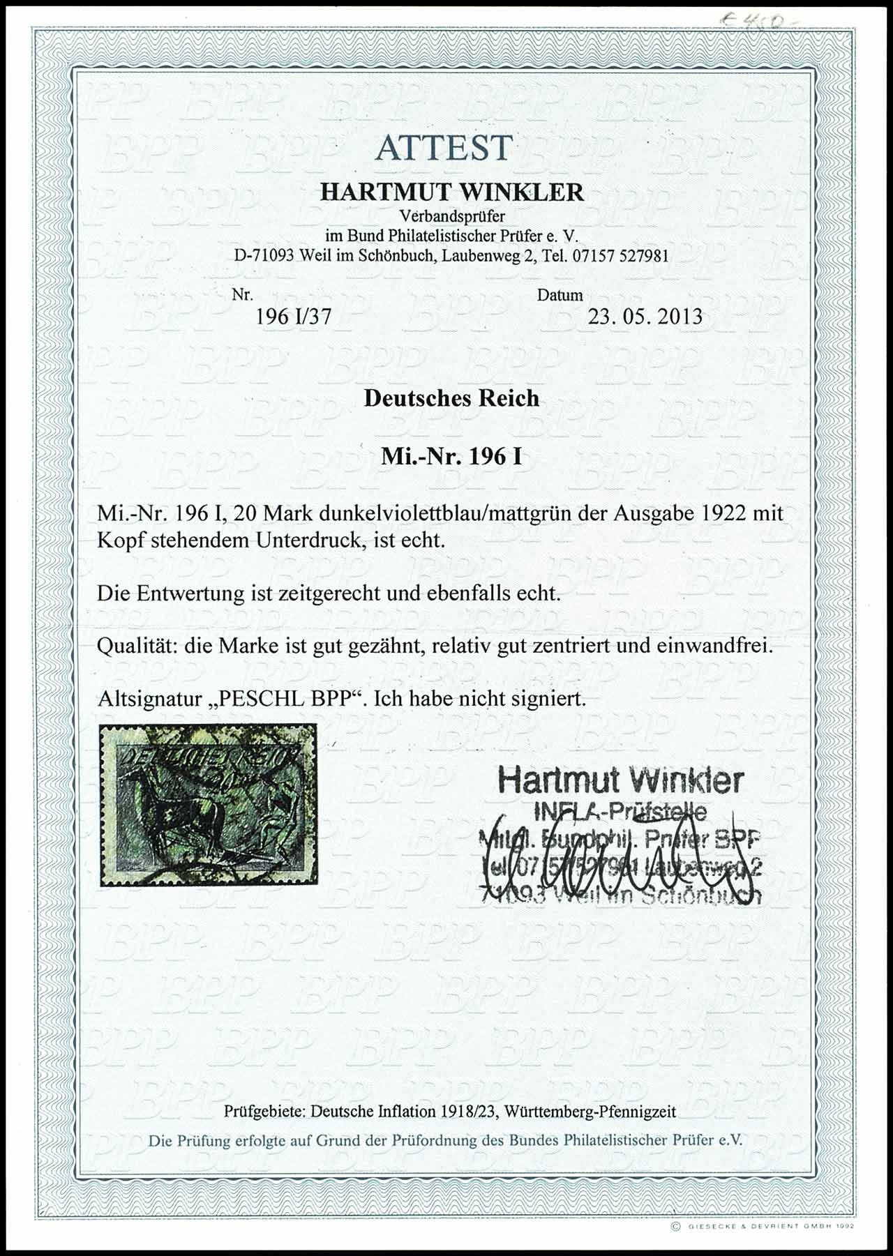 20 Mark Pflüger, Wasserzeichen 2, Abart I "kopfstehender Unterdruck", gestempelt, tadellose Erhaltung signiert Peschl BPP, Fotoattest Hartmut Winkler BPP "einwandfrei", Mi. 900.-