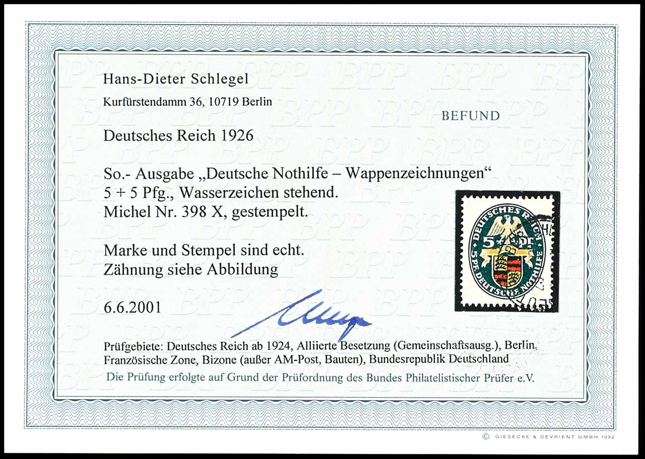 5 Pfennig Nothilfe "Wappen Württemberg", Wasserzeichen 2X (stehend), gestempelt, tadellose Erhaltung, Fotobefund Hans-Dieter Schlegel BPP, Mi. 900.- - seltene Marke!