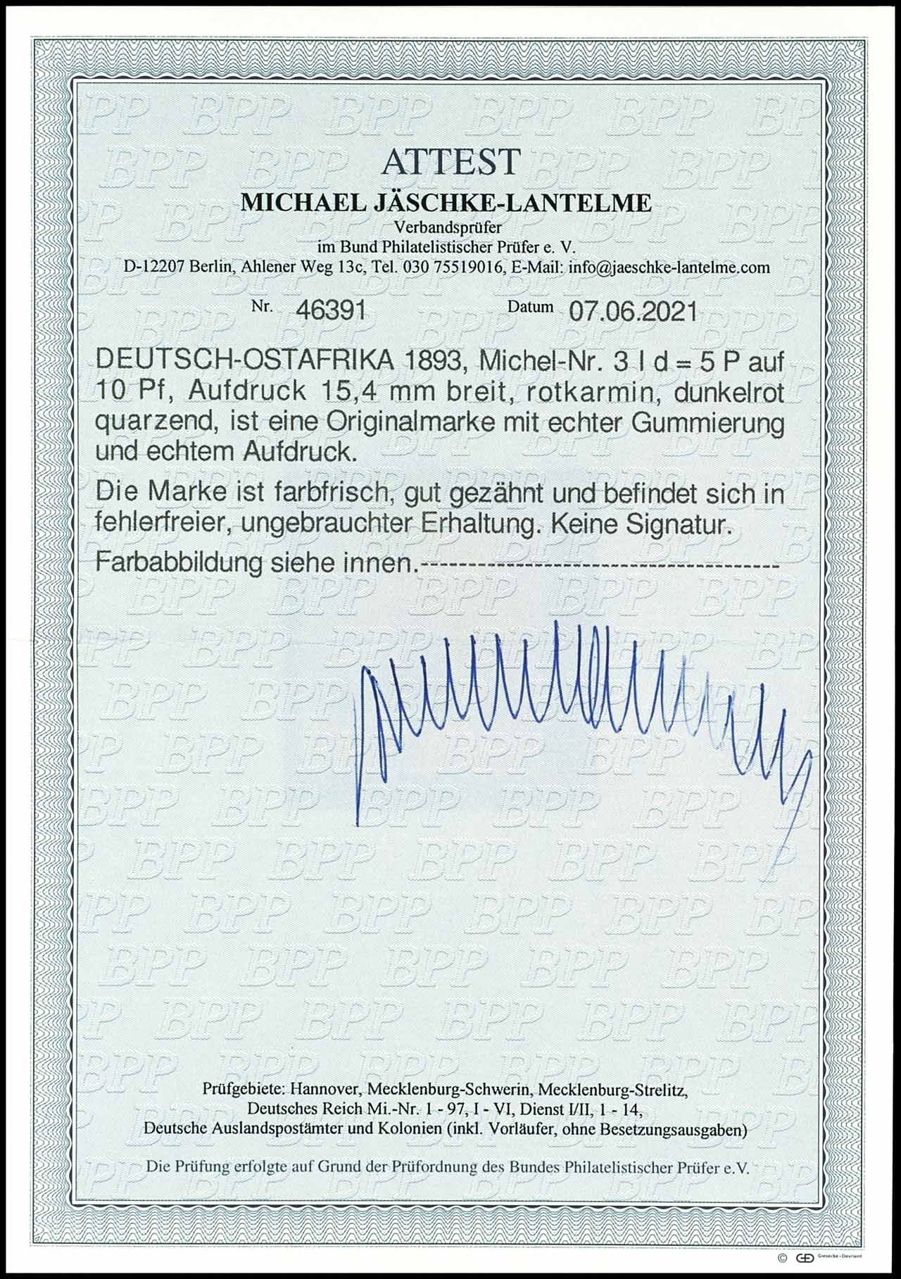 5 Pesa auf 10 Pfennig. rotkarmin, ungebraucht, tadellose Erhaltung, Fotoattest Jäschke-L. BPP "in fehlerfreier Erhaltung", Mi. 600.-