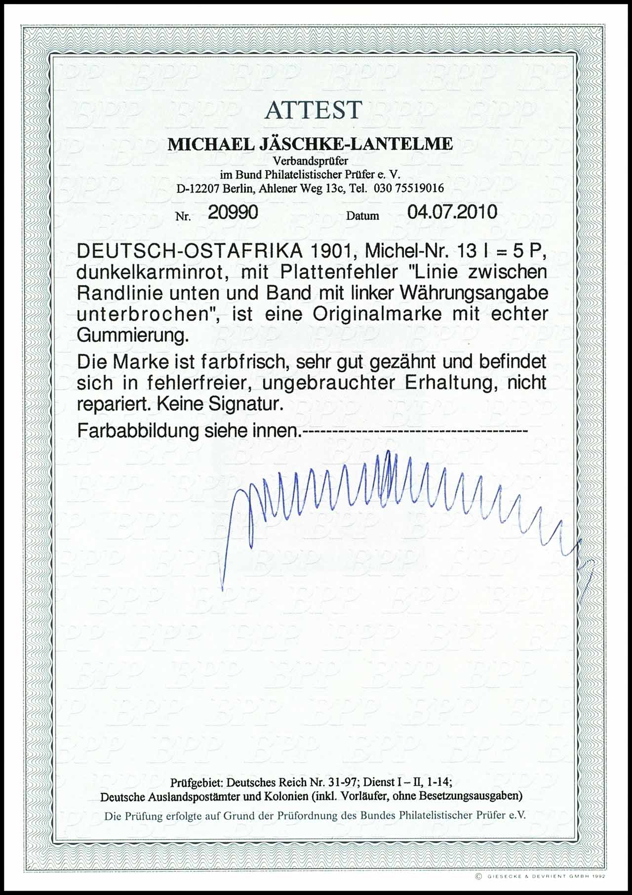 5 Pesa, dunkelkarminrot, Plattenfehler "Linie unter linker Währungsangabe unterbrochen", ungebraucht, tadellose Erhaltung, Fotoattest Jäschke-L. BPP "in fehlerfreier, ungebrauchter Erhaltung", Mi. 700.-