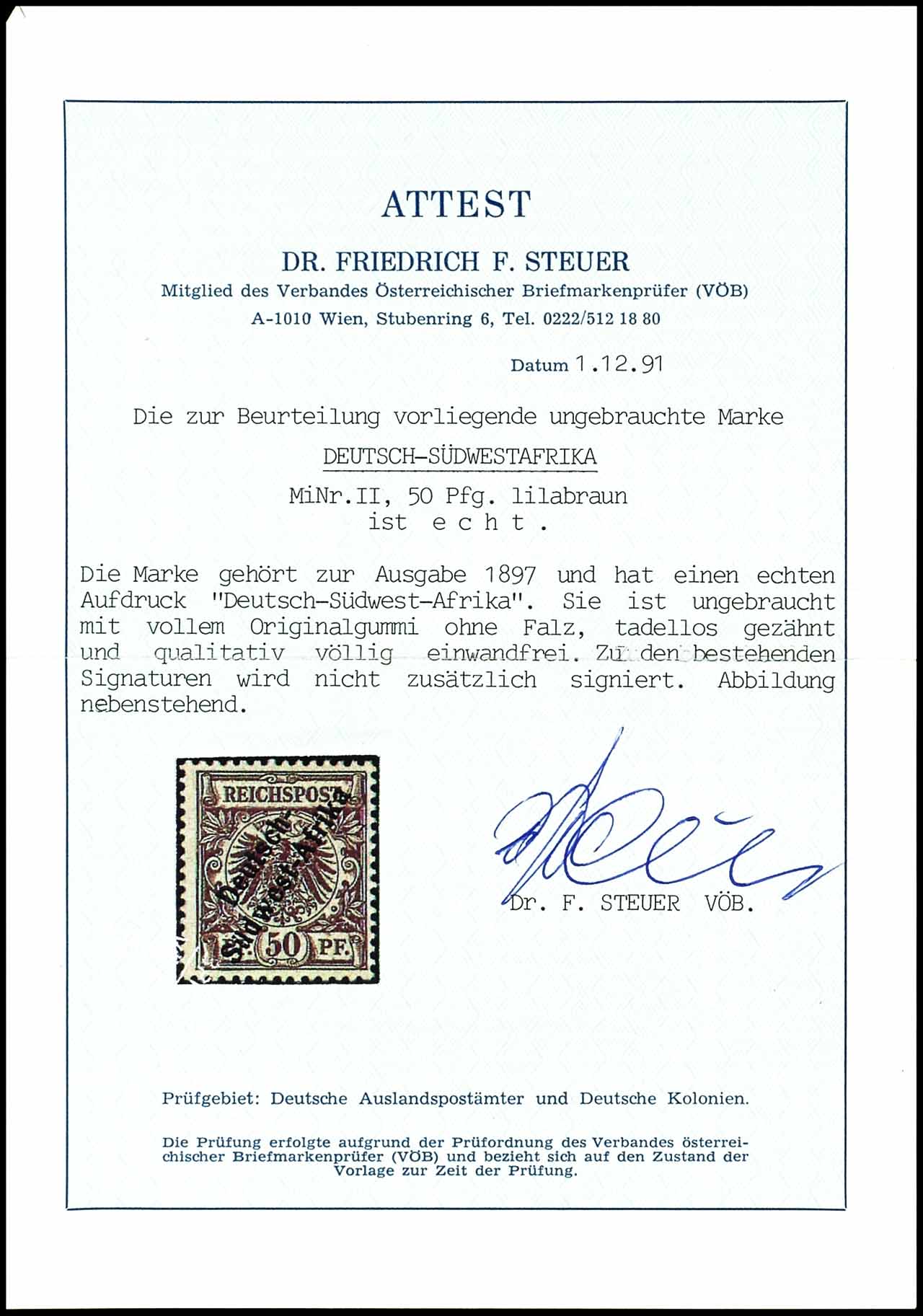 50 Pf mit Aufdruck in 3 Worten tadellos postfrisch, gepr. Czimmek BPP, Richter, sowie Fotoattest Dr. Friedrich F. Steuer VÖB: "völlig einwandfrei", Mi. 750.-