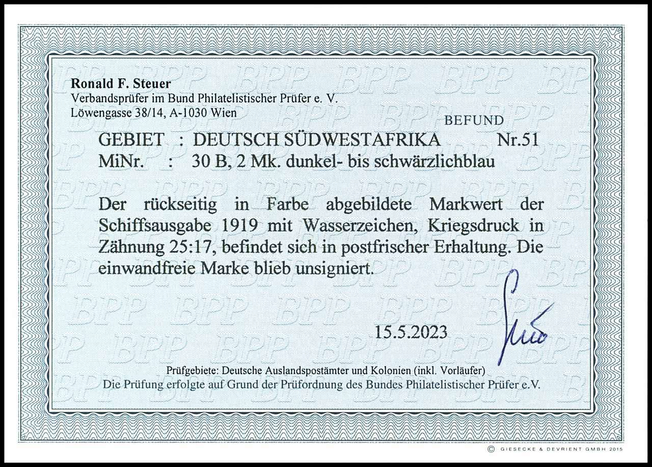 2 Mark Kaiseryacht, Kriegsdruck, 25 : 17 Zähnungslöcher, tadellos postfrisch, unsigniert, Fotobefund R. F. Steuer BPP (2023) "einwandfrei", Mi. 320.-