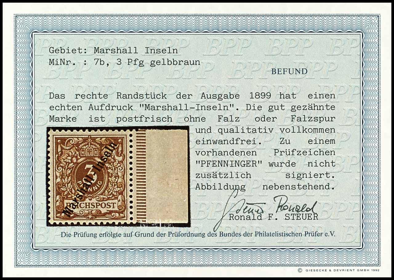 3 Pfennig Krone/Adler lebhaftorangebraun, tadellos postfrisch vom rechten Bogenrand, geprüft Pfenninger und Fotobefund Ronald F. Steuer BPP: "postfrisch, vollkommen einwandfrei", Mi. 900.-