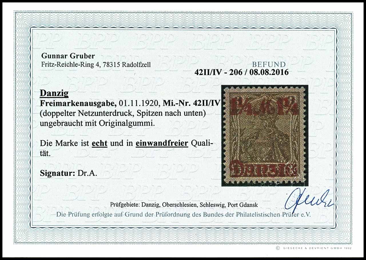 1 /14 Mark auf 3 Pfennig Germania, lebhaftlilagrauer Netzunterdruck, Spitzen nach unten, Abart "doppeltem Netzunterdruck", ungebraucht mit Originalgummierung, tadellose Erhaltung, Fotobefund Gunnar Gruber BPP "in einwandfreier Qualität.", Mi. 250.-