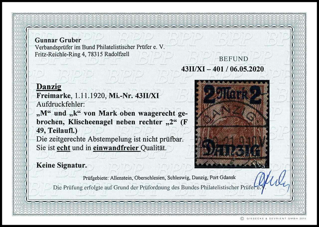 2 Mark auf 35 Pfennig mit Netzunterdruck, hell-(grün)grau, Spitzen nach unten, Aufdruckfehler VII ""M" und "k" von Mark oben waagrecht gebrochen, Klischeenagel neben rechter "2", Feld 49 Teilauflage", tadellose Erhaltung, Fotobefund Gunnar Gruber BPP (2020) "echt und einwandfrei", Mi. 400.-