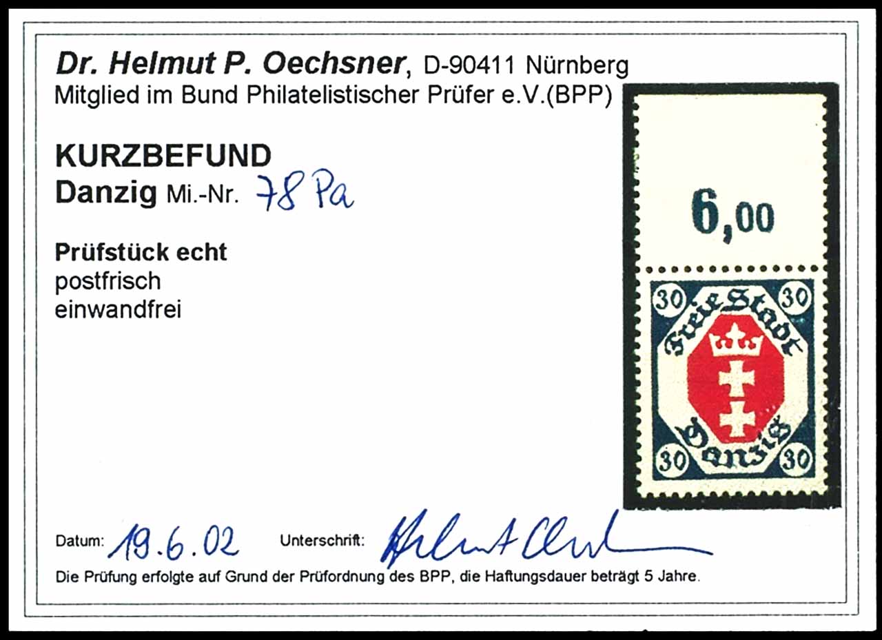 30 Pfennig Staatswappen, Abart "geklebte Papierbahn", Oberrandstück, postfrisch, tadellose Erhaltung, Fotobefund Dr. Helmut P. Oechsner BPP "einwandfrei", Mi. 250.-
