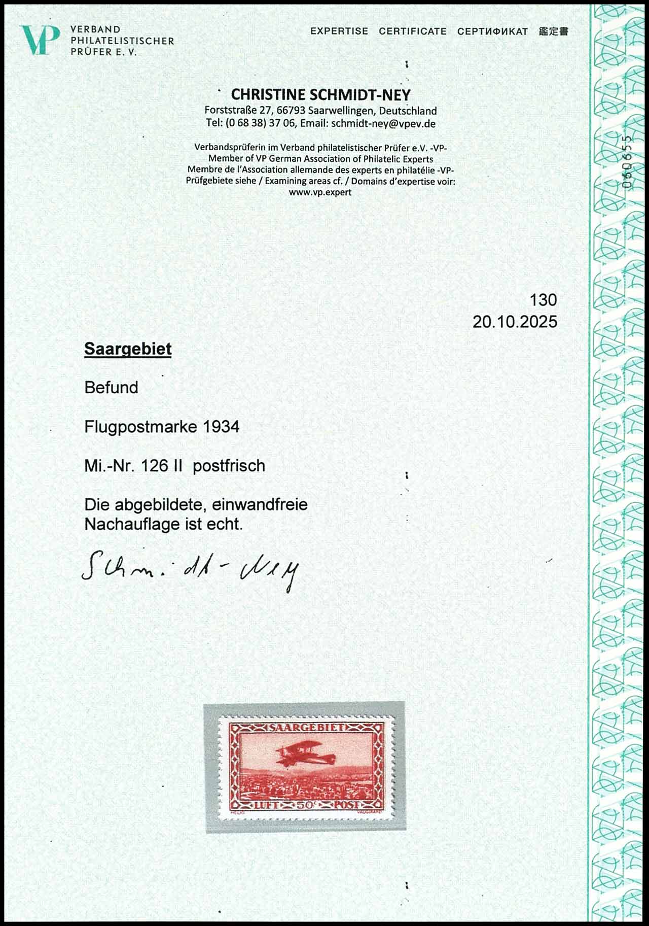 50 Cent Flugpost 1928, seltene Nachauflage von 1934, postfrisch, tadellose Erhaltung, Expertise Christine Schmidt-Ney VP (2025), "einwandfrei", Mi. 500.-