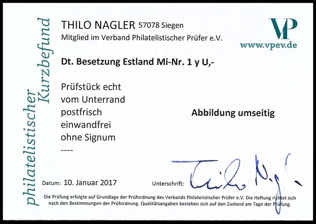 15 K ungezähnt, tadellos postfrisch vom Unterrand, Kurzbefund Nagler VP "echt, einwandfrei", Mi. 150.-