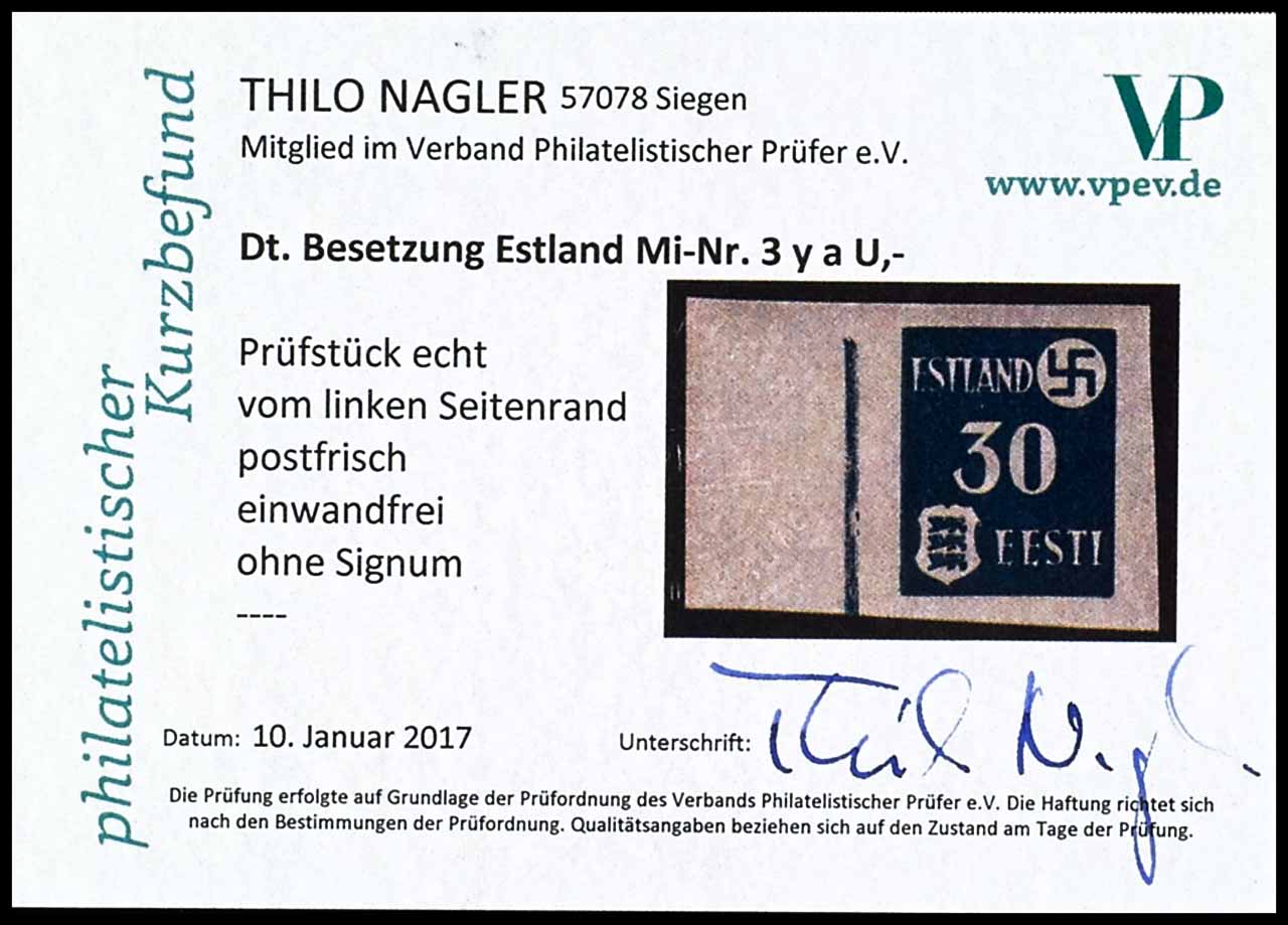 30 K ungezähnt, tadellos postfrisch vom linken Rand, Kurzbefund Nagler VP "echt, einwandfrei", Mi. 150.-