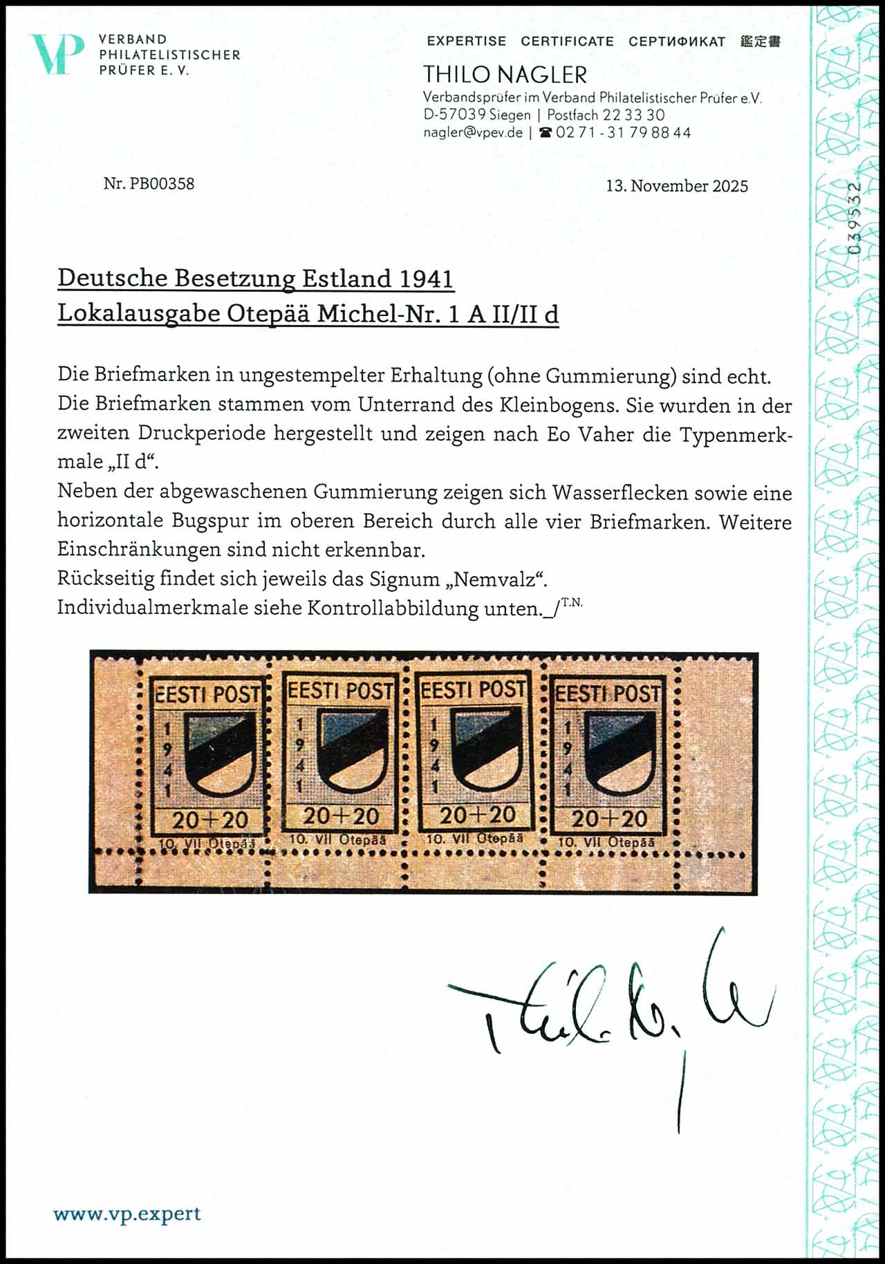 30 + 30 Kopeken Wappenzeichnung, gezähnt, 2. Druckperiode, Typenmerkmal IId nach Eo Vaher, ungebraucht ohne Gummierung, Wasserflecken sowie horizontale Bugspuren, Einheiten sind recht selten, geprüft Nemvalz, Expertise Thilo Nagler VP (2025)