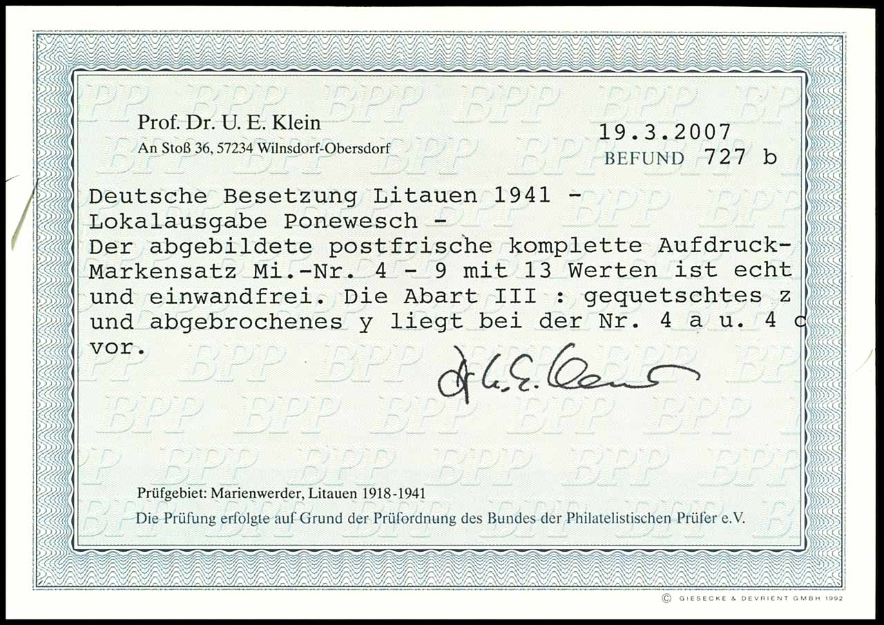 5 Kopeken - 60 Kopeken Freimarken mit Aufdruck "Laisva / Lietuve / 27-VI-1941 / Panevezys" in allen Farben, komplette Garnitur mit 13 Marken, postfrisch, tadellose Erhaltung, teils geprüft und Fotobefund Prof. Dr. Udo Eberhard Klein BPP "echt und einwandfrei", Mi. 693.- - selten so komplett angeboten!