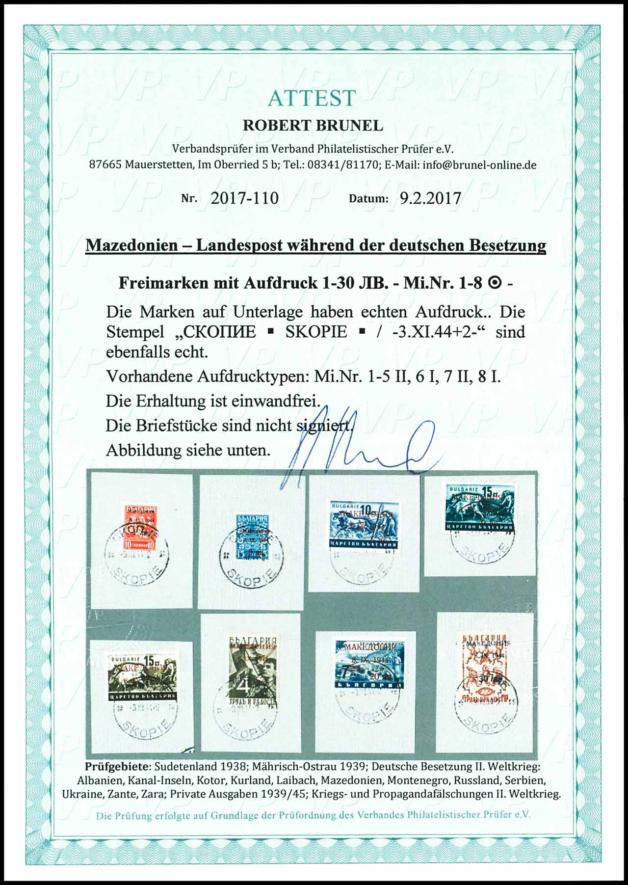 1 Lew auf 10 St. bis 30 Lew auf 14 Lew Freimarken, kompletter Satz mit acht Werten, gestempelt, tadellose Erhaltung, geprüft Dr. Dub, Expertise Robert Brunel VP "Die Erhaltung ist einwandfrei.", Mi. 400.-