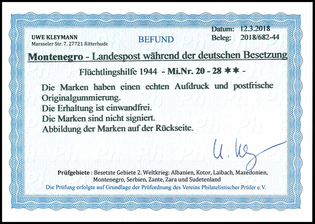0,15+0,85 RM auf 3 D.-0,5+1,50 RM auf 2 L. Flüchtlingshilfe, in einwandfreier postfrischer Erhaltung, unsigniert, Fotobefund Uwe Kleymann:" Die Erhaltung ist einwandfrei.", Mi. 660.-