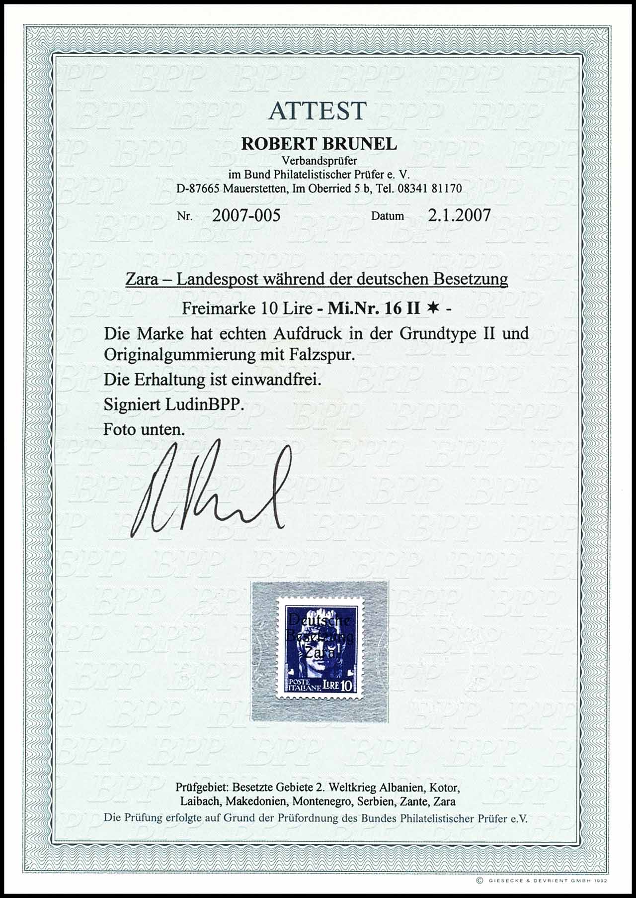 10 Lire Freimarke mit Aufdruck in Type II, ungebraucht mit Originalgummierung, tadellose Erhaltung, Auflage nur 410 Exemplare, Fotoattest Robert Brunel BPP, Mi. 1.200.-