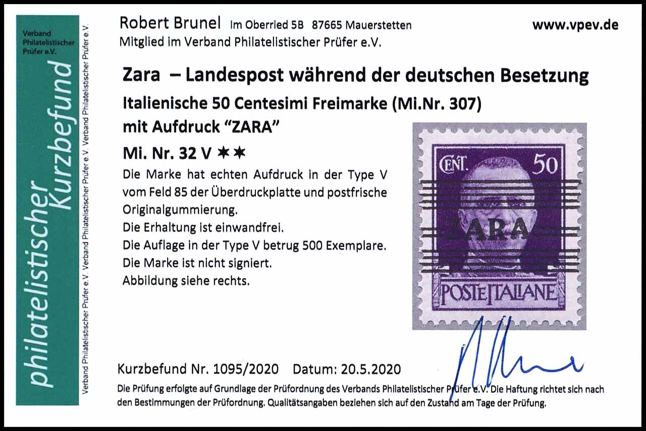 50 Centesimi mit Buchdruck-Bandaufdruck "Zara", seltene Aufdrucktype V, Auflage nur 500 Exemplare, postfrisch, tadellose Erhaltung, Fotobefund Robert Brunel VP (2020) "die Erhaltung ist einwandfrei", Mi. 150.-