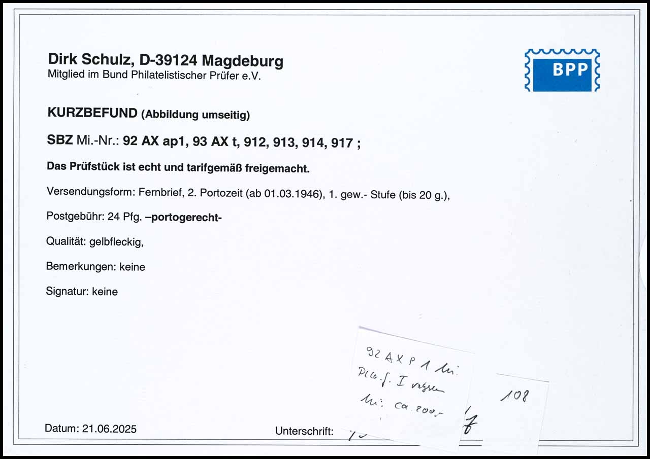3 Pfennig Thüringen auf p1-Papier in Mischfrankatur, 2. Portoperiode, 1. Gewichtsstufe, portorichtig, Marke etwas gelblich verfärbt, Kurzbefund Dirk Schulz BPP (2025), Mi. 200.-