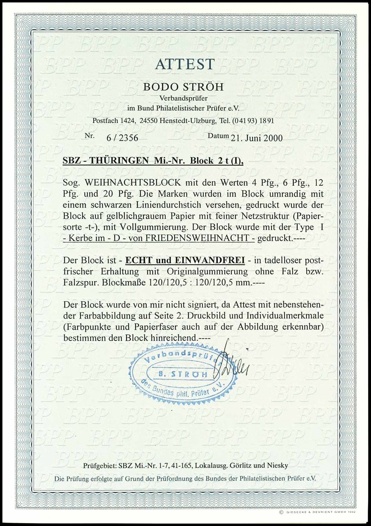 Blockausgabe "Friedensweihnacht", Papier t, Type I, tadellos postfrisch, unsigniert, Fotoattest Bodo Ströh BPP "echt und einwandfrei", Mi. 1.800.-