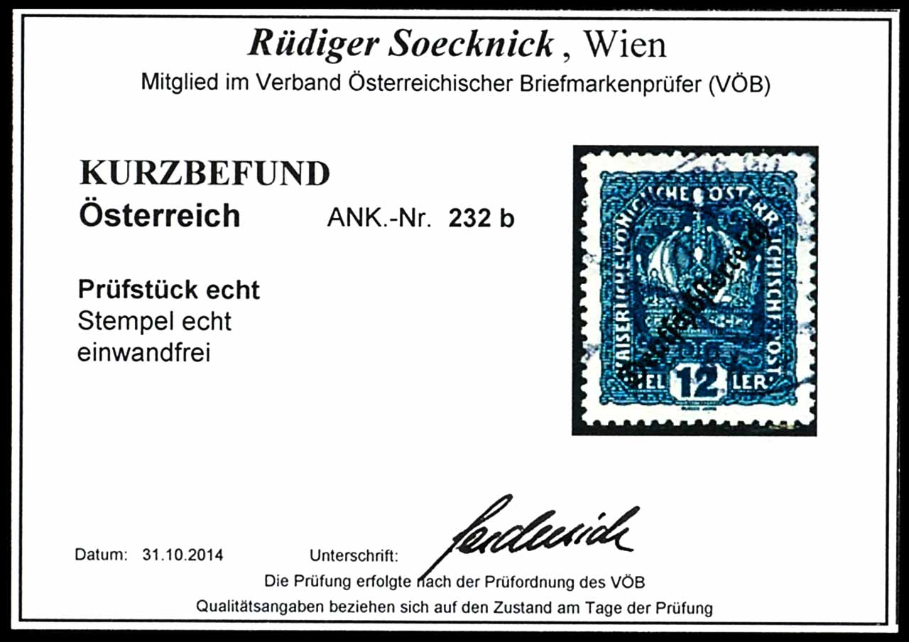 12 Heller Freimarken mit schrägem, schwarzem Buchdruckaufdruck "Deutschösterreich", seltene Farbe schwärzlichgrünblau, gestempelt, tadellos, Fotobefund Rüdiger Soecknick "VÖB) 2014 "echt und einwandfrei", Mi -.-