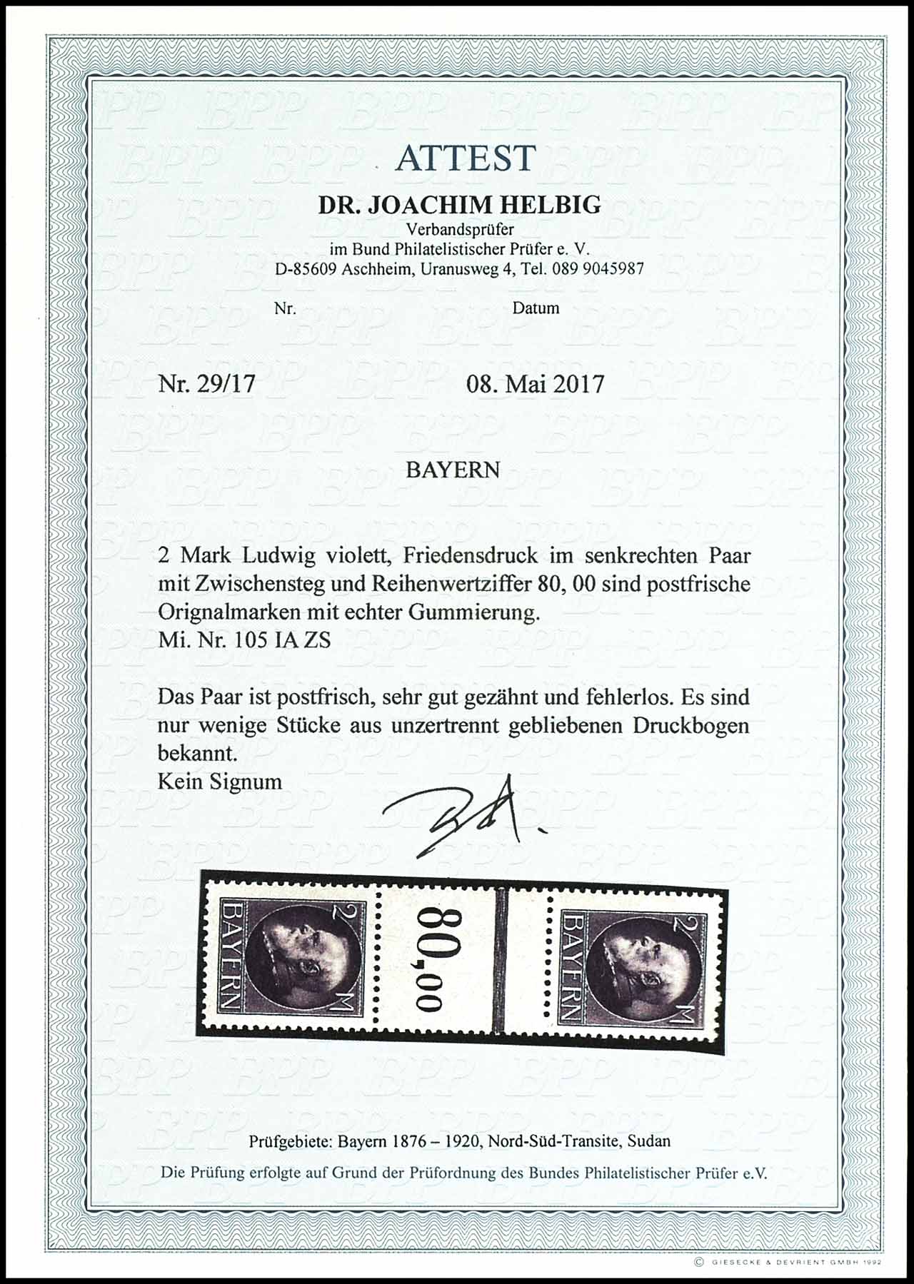 2 Mark König Ludwig III., Friedensdruck, senkrechtes Zwischenstegpaar, postfrisch, tadellose Erhaltung, unsigniert, Fotoattest Dr. Joachim Helbig BPP "fehlerlos"