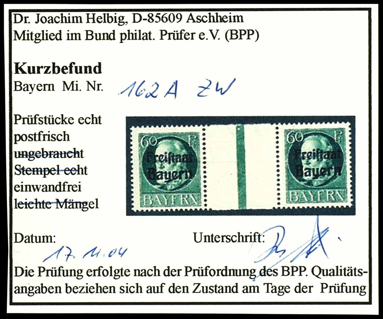 60 Pfennig König Ludwig III., gezähnt, waagerechtes Zwischenstegpaar, postfrisch, tadellose Erhaltung, unsigniert, Fotobefund Dr. Joachim Helbig BPP "einwandfrei"