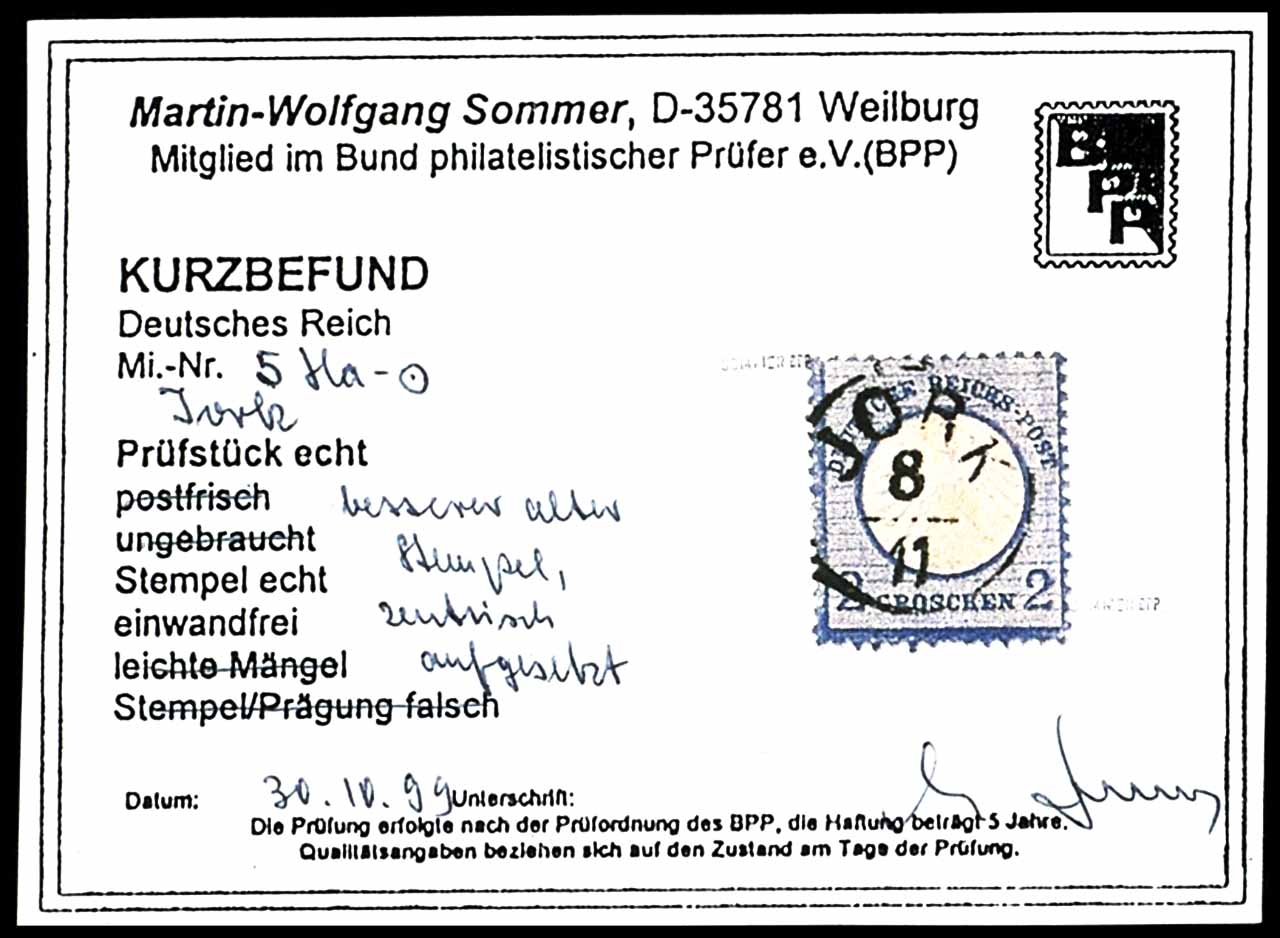 2 Groschen kleiner Schild, dunkelgraublau, entwertet mit nachverwendetem Hannover-Stempel "JORK 8/11", zentrisch abgeschlagen, tadellose Erhaltung, Fotobefund Martin-Wolfgang Sommer BPP (1999) "einwandfrei", Feuser nachverwendete Altdeutschland-Stempel: 60 Punkte
