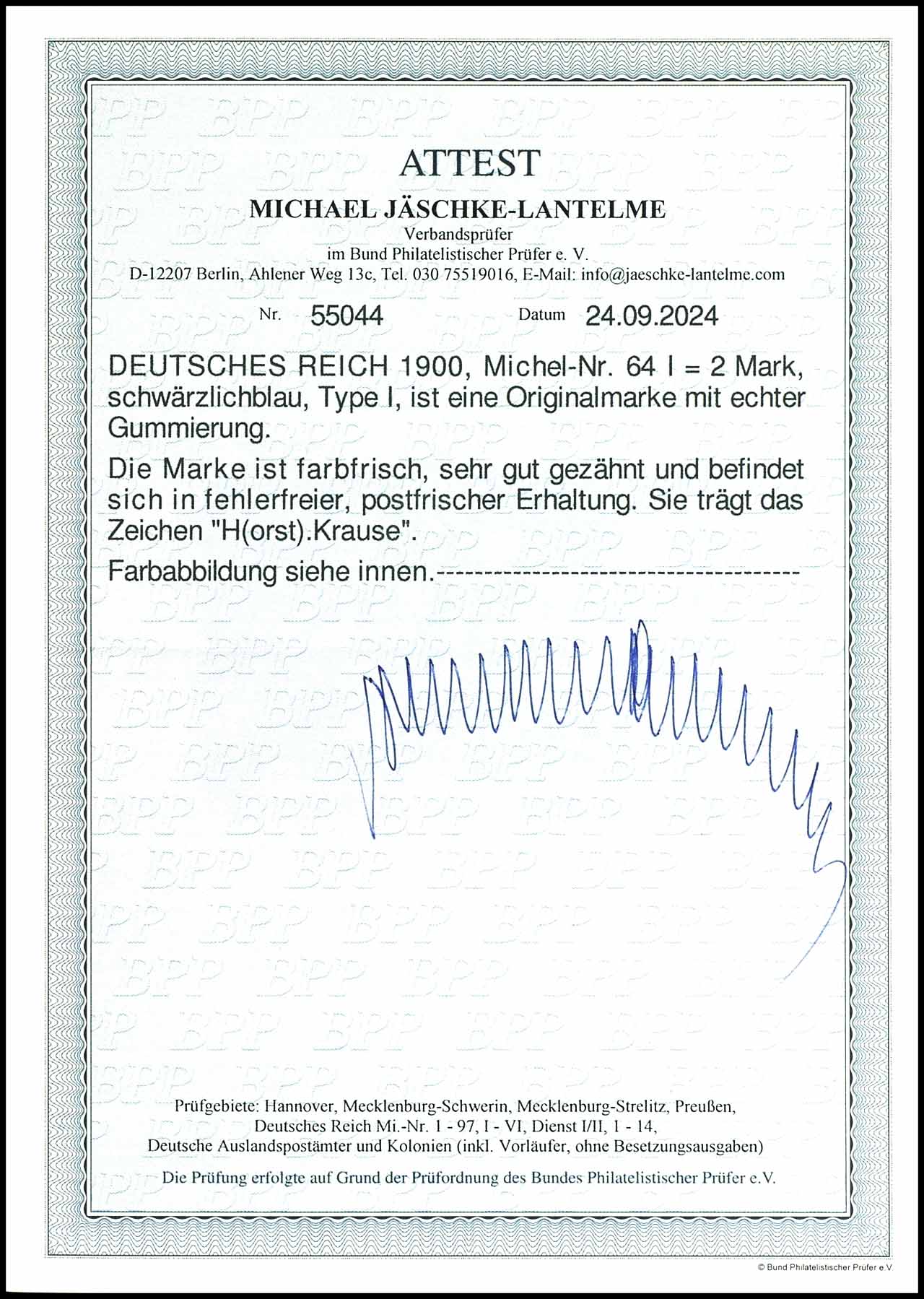 2 Mark Reichspost, Type I, postfrisch mit Originalgummierung, tadellose Erhaltung, geprüft H Krause, Fotoattest Michael Jäschke-Lantelme BPP (2024) "in fehlerfreier, postfrischer Erhaltung", Mi. 600.-
