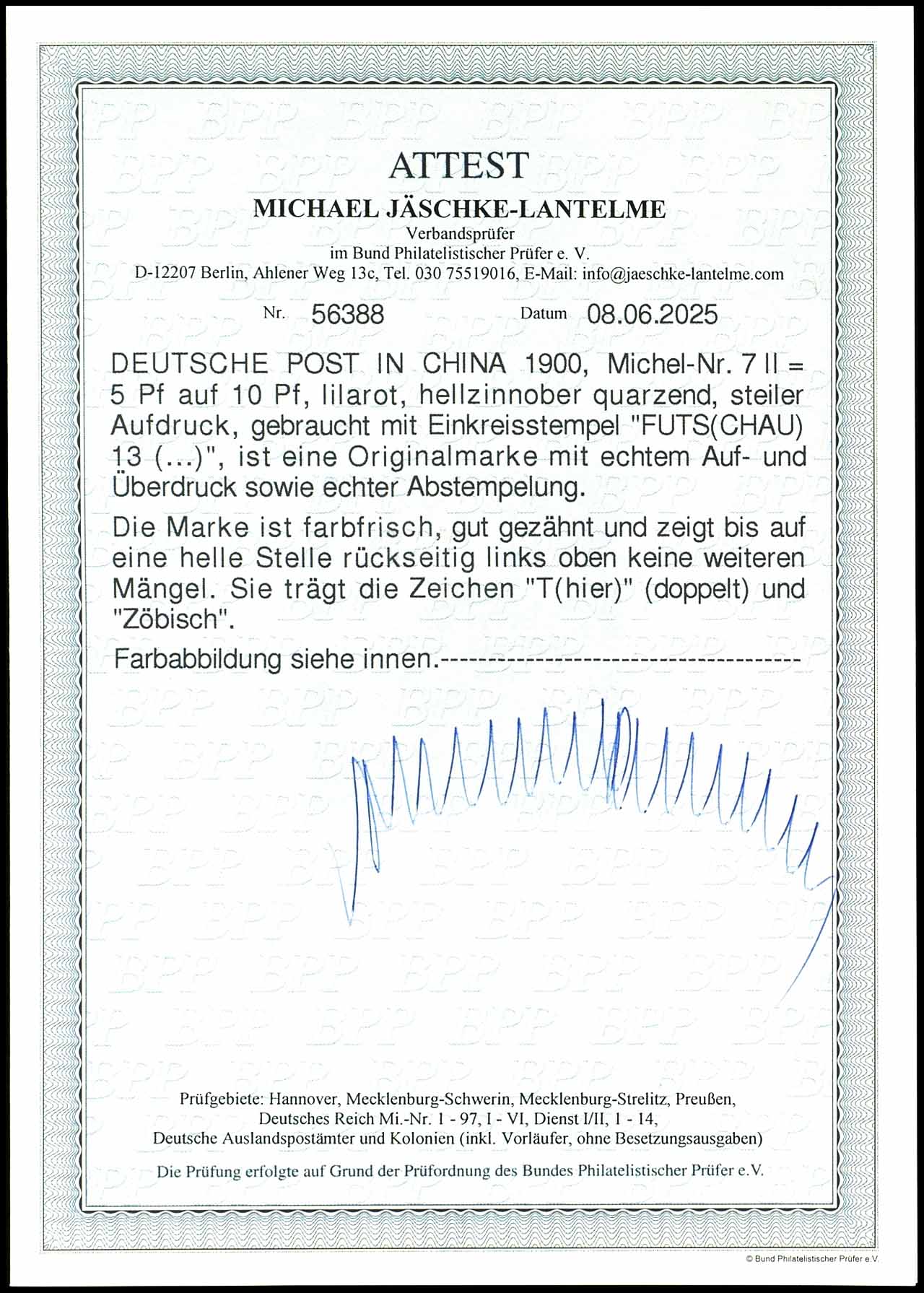5 Pfennig auf 10 Pfennig Diagonalaufdruck, gestempelt "FUTSCHAU 13...", geprüft Thier, Fotoattest Jäschke-Lantelme BPP (2025) "bis auf eine helle Stelle rückseitig links oben, keine weiteren Mängel", Mi. 1.000.-