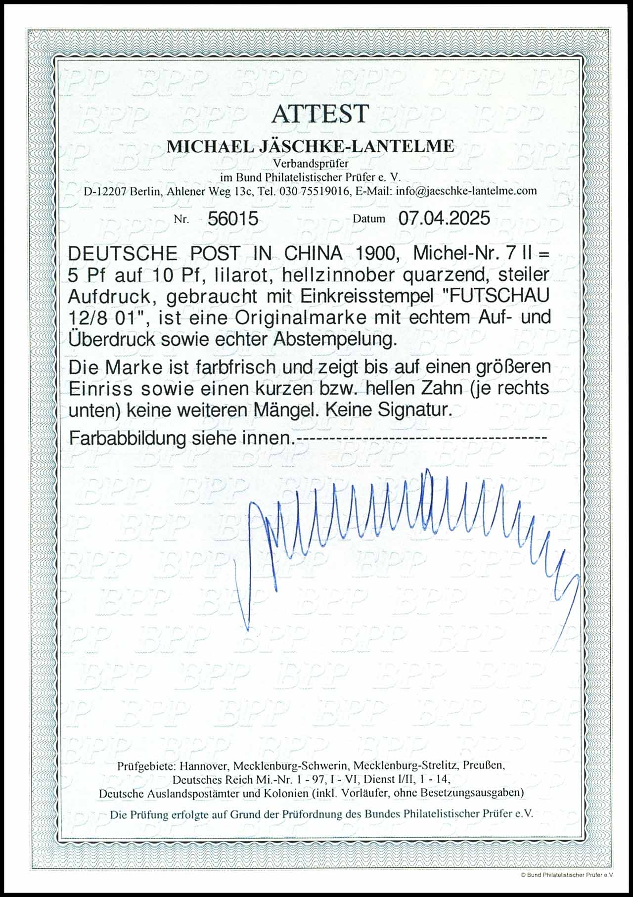5 Pfennig auf 10 Pfennig FUTSCHAU, entwertet mit Einkreisstempel "FUTSCHAU 12/8 01", Fotoattest Jäschke-Lantelme BPP (2025), Mi. 1.000.-