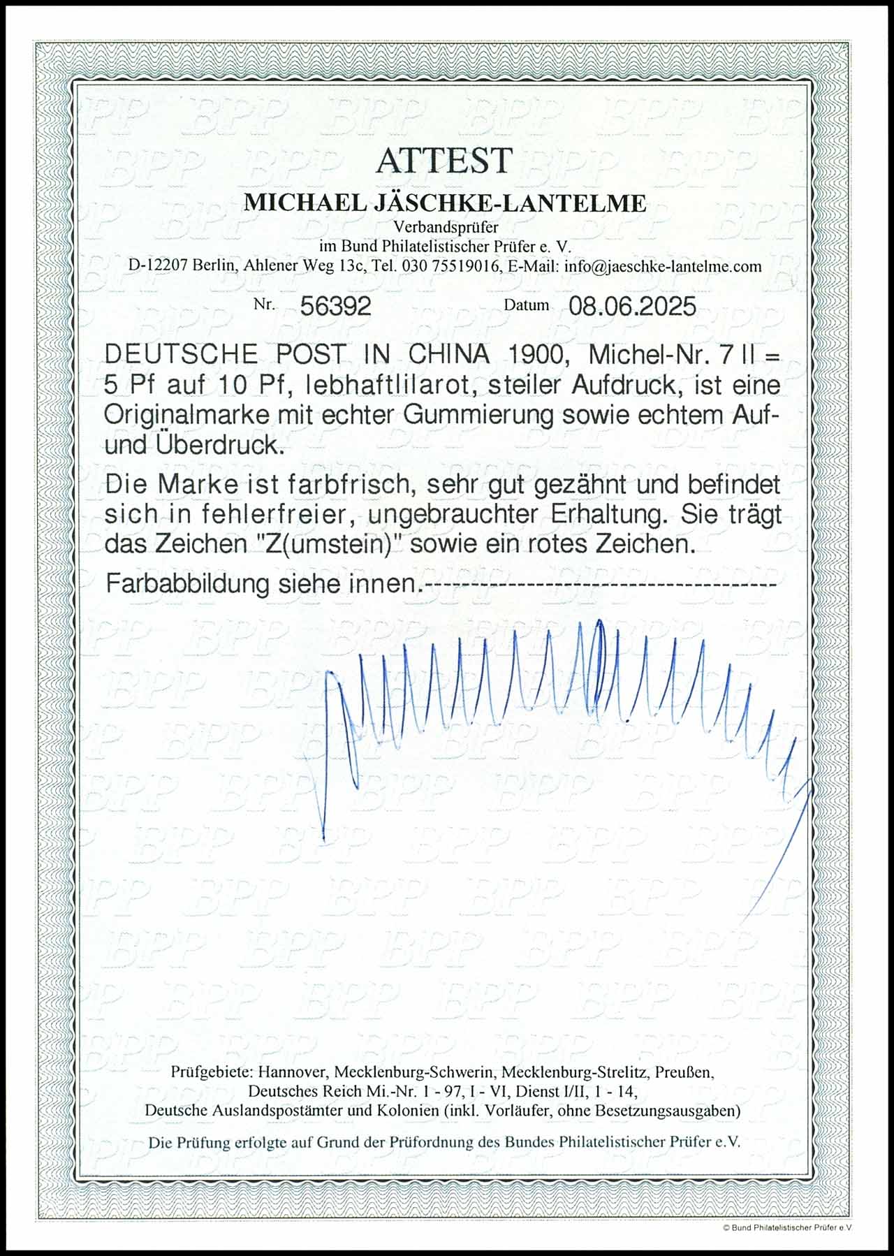 5 Pfennig auf 10 Pfennig, lebhaftlilarot, steiler Aufdruck, ungebraucht, tadellose Erhaltung, signiert, Fotoattest Jäschke-Lantelme BPP (2025) "in fehlerfreier, ungebrauchter Erhaltung", Mi. 700.-