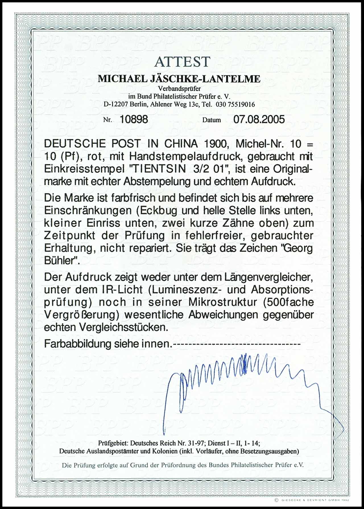10 Pfennig Handstempelaufdruck, Sorte I, gestempelt, kleine Einschränkungen, Fotoattest Jäschke-L. BPP, Mi. 1100,-