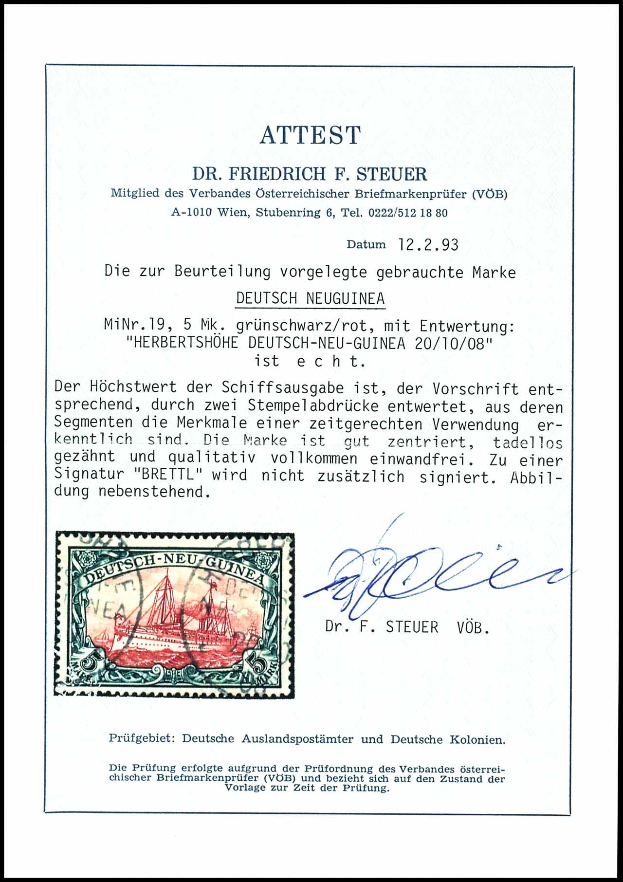 5 Mark grünschwarz/dunkelkarmin, gestempelt, tadellose Erhaltung, Fotoattest Dr. Steuer VÖB "qualitativ vollkommen einwandfrei", Mi. 600,-