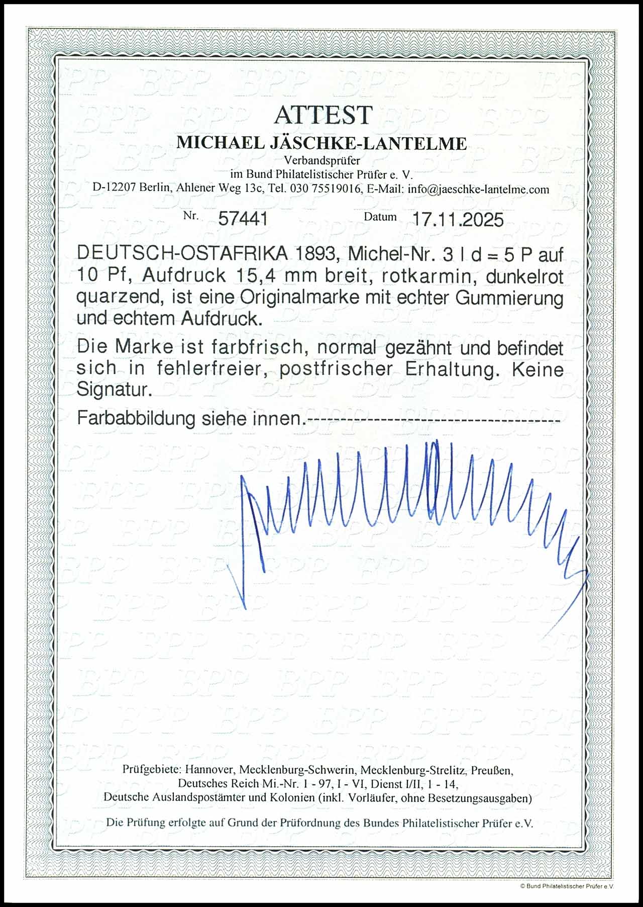 5 Pesa auf 10 Pfennig Krone/Adler rotkarmin (UV dunkelrot quarzend), postfrisch, tadellose Erhaltung, Fotoattest Michael Jäschke-Lantelme BPP 82025) "... farbfrisch, normal gezähnt und in fehlerfreier, postfrischer Erhaltung.", Mi. 2.000.-
