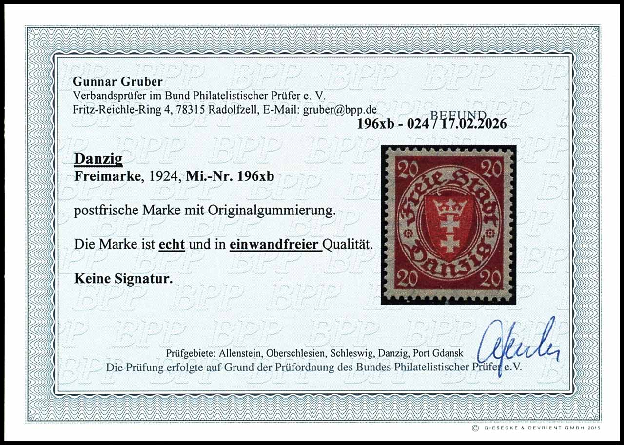 20 Pfg lilarot/dunkelrosa, postfrisch, tadellose Erhaltung, Fotobefund Gruber BPP, Mi. 250.-