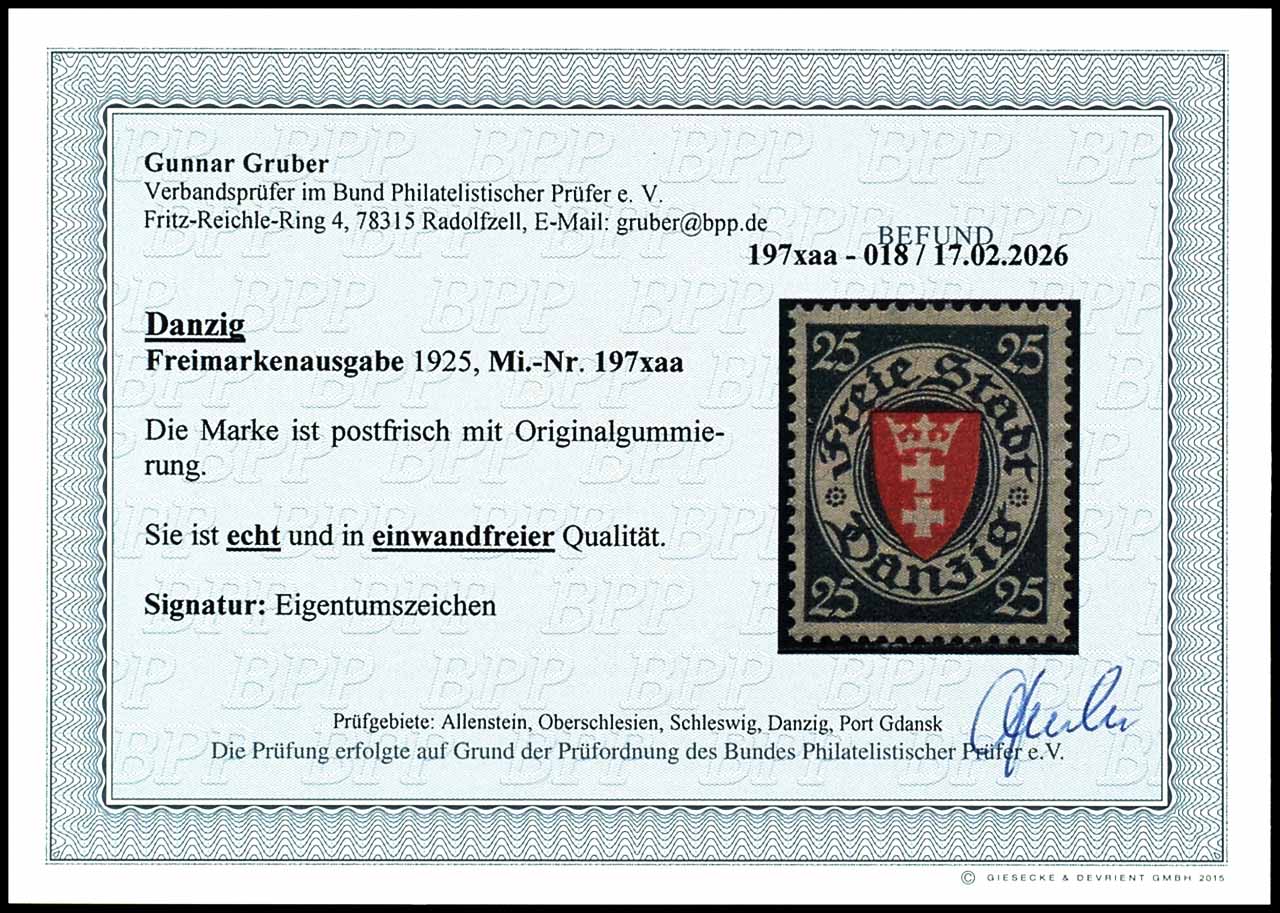 25 Pfg Wappen im Oval, Mittelstück dunkelrosa quarzend, postfrisch, tadellose Erhaltung, Fotobefund Gruber BPP: "echt und einwandfrei", Mi. 350.-