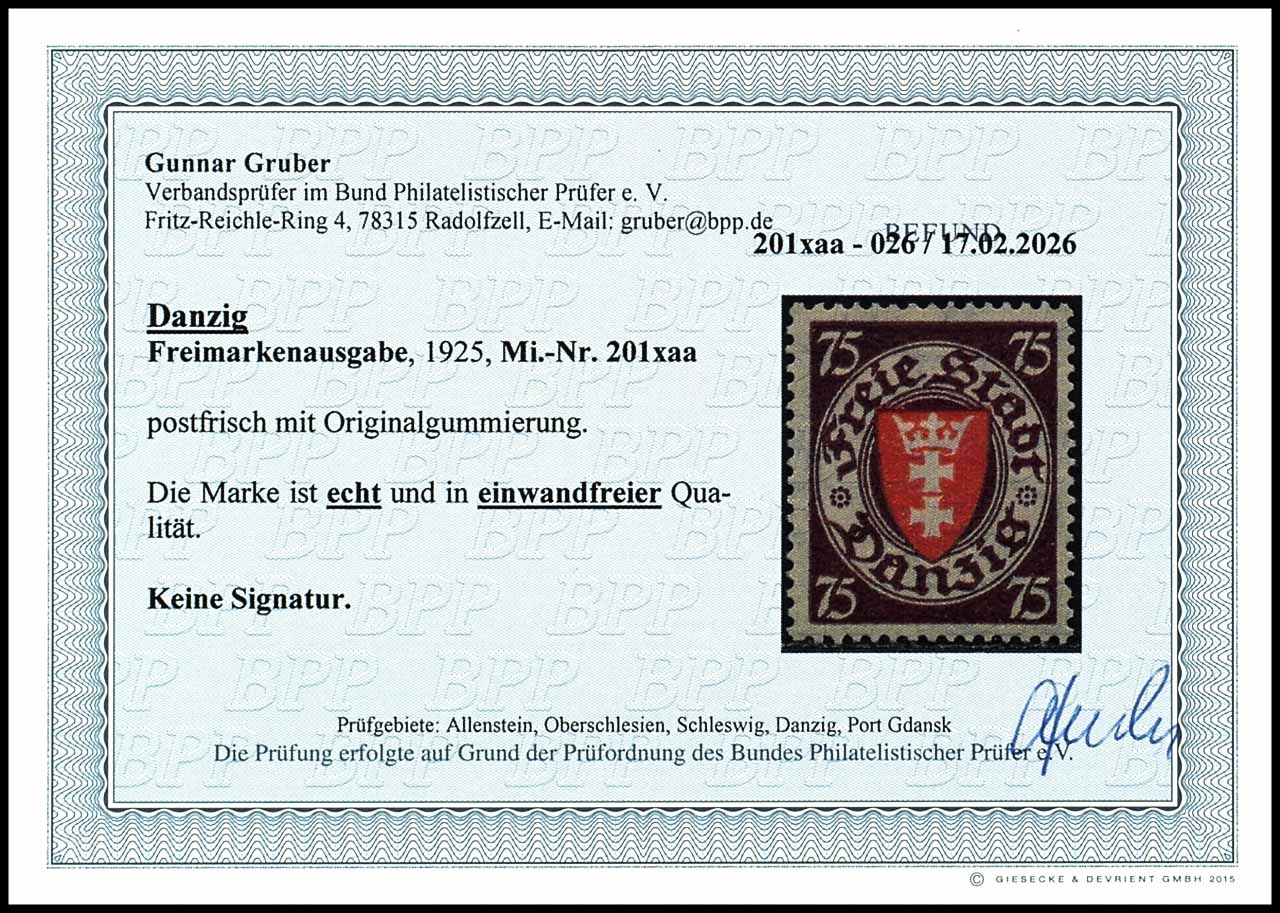 75 Pfg Wappen im Oval, Mittelstück leuchtend dunkelrosa quarzend, postfrisch, Fotobefund Gruber BPP: "echt und einwandfrei", Mi. 260.-