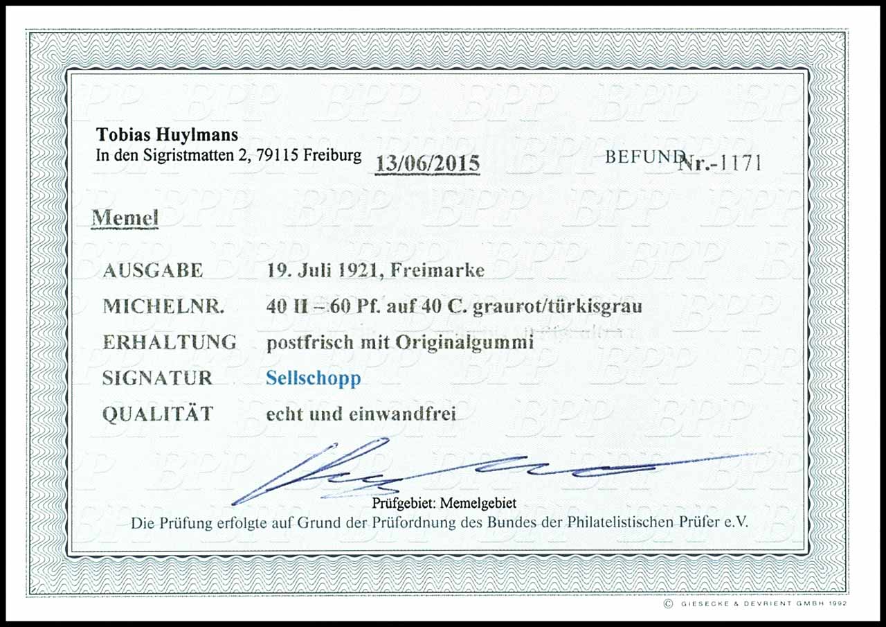 60 Pfennig Flugpostmarke (I) in Typ II, weißes Papier, postfrisch, tadellose Erhaltung, geprüft Sellschopp, Fotobefund Huylmans BPP "einwandfrei", Mi. 200.-