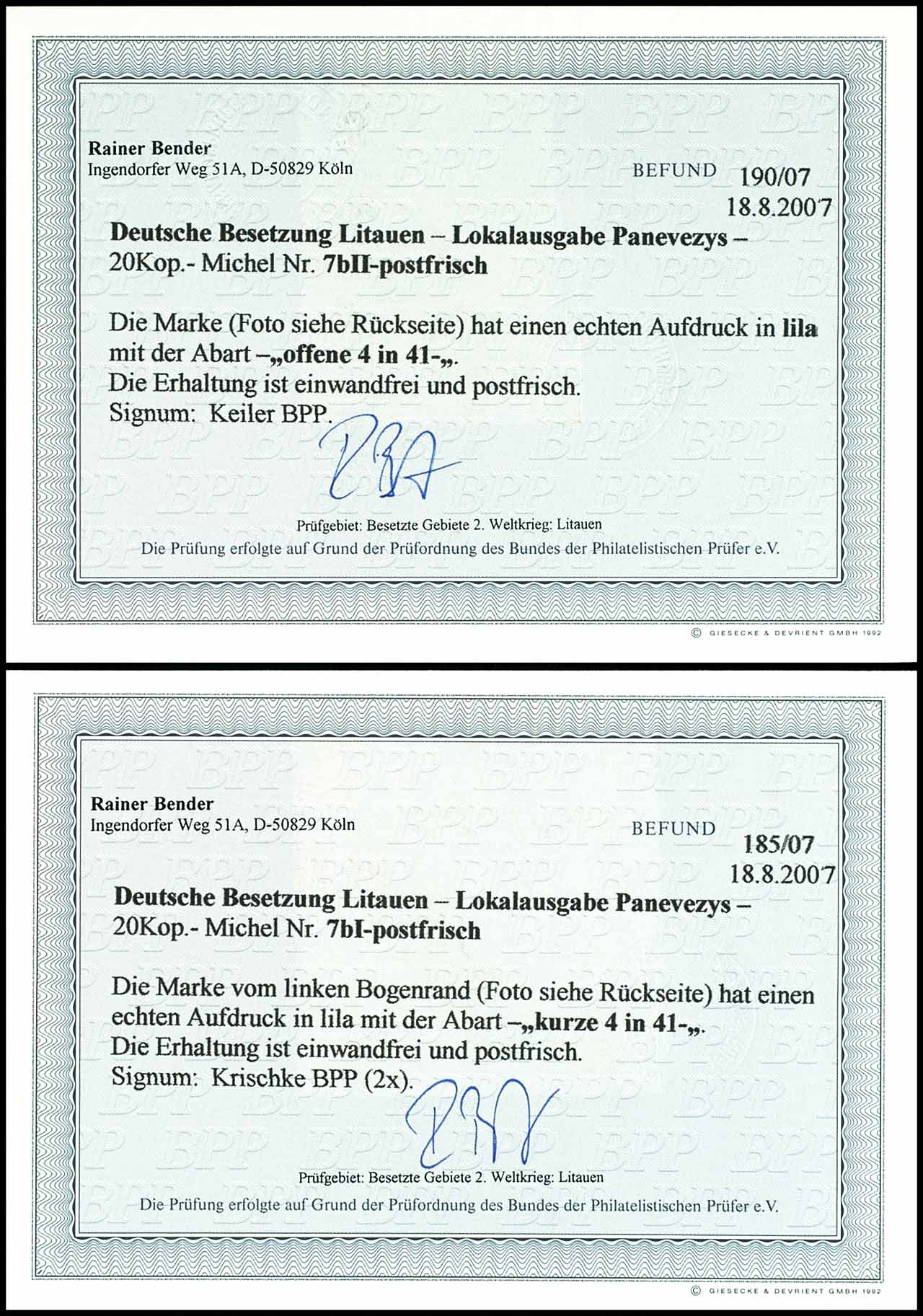 20 Kopeken Freimarke mit schwärzlichrotviolettem Aufdruck und Abart "kurze 4 in 41",bzw Abart "4 von 41 offen", postfrisch, tadellose Erhaltung, geprüft Keiler BPP, bzw. Krischke, beide Marken jeweils mit Fotobefund Rainer Bender BPP (2007), "Die Erhaltung ist einwandfrei.", Mi. 150.-