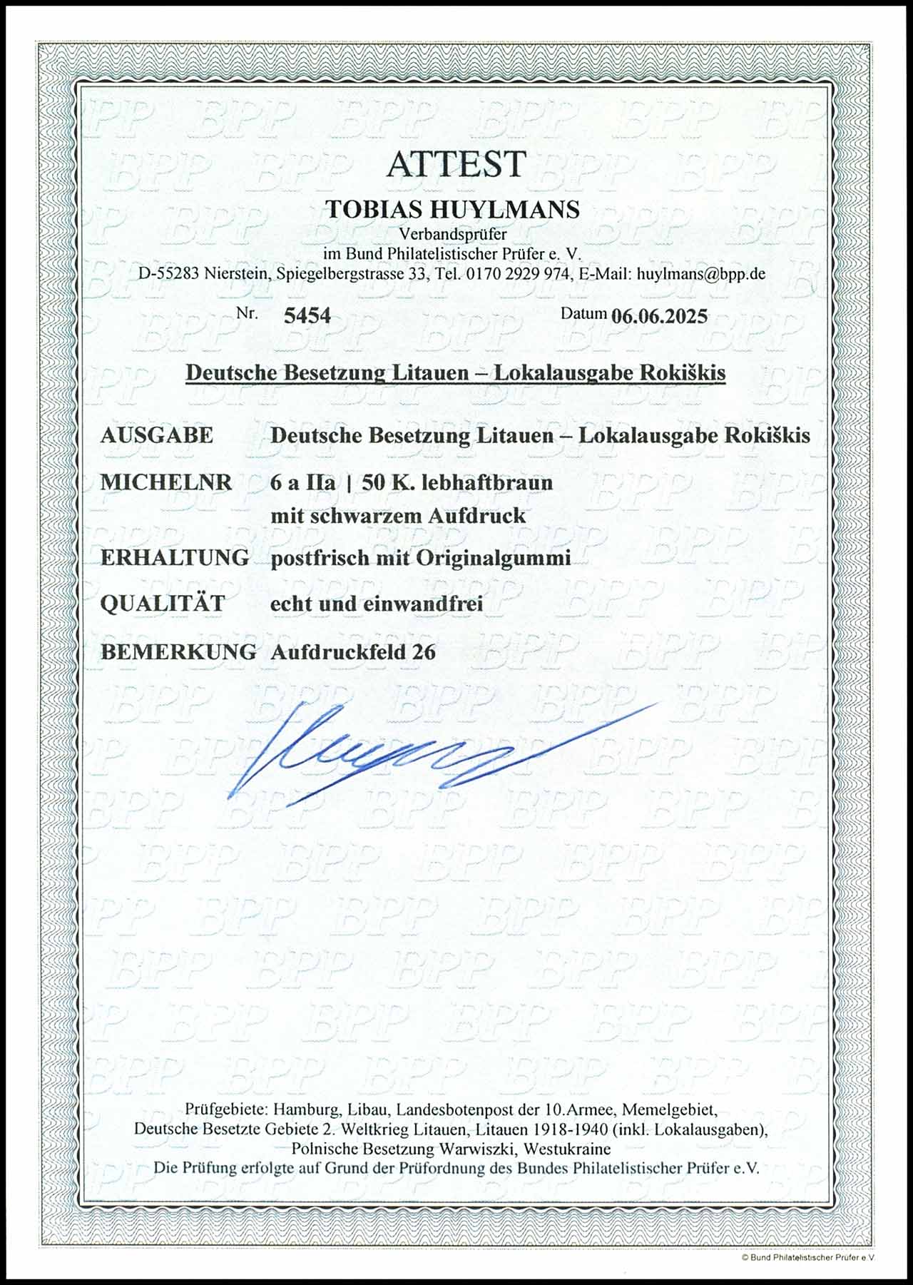 50 Kopeken, lebhaftbraun mit schwarzem Aufdruck in Type II, Aufdruckfeld 26, tadellos, postfrisch, unsigniert, Fotoattest Tobias Huylmans BPP (2025), Mi. 500.-